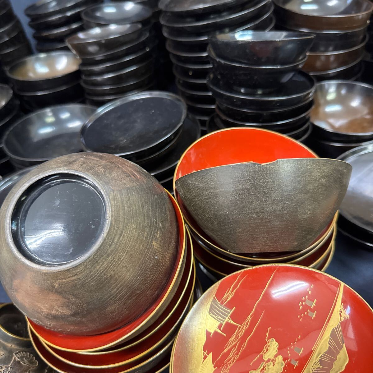 ◆木製漆器 大量まとめ売り 吸い物椀 お椀 詳細不明 時代物 当時物 レトロ アンティーク 古道具 古民家 漆芸 工芸品 食器 ジャンク 247-55