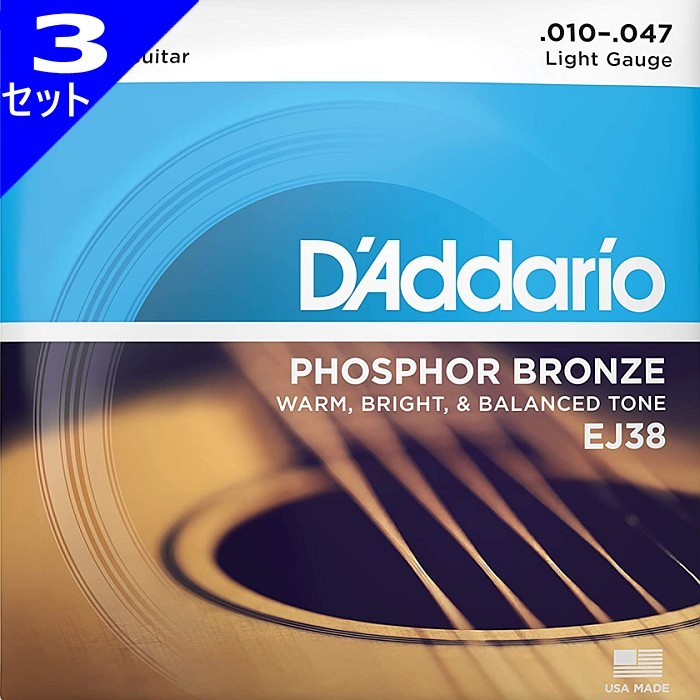 3セット 12弦用 D'Addario EJ38 Light 010-047 Phosphor Bronze ダダリオ アコギ弦