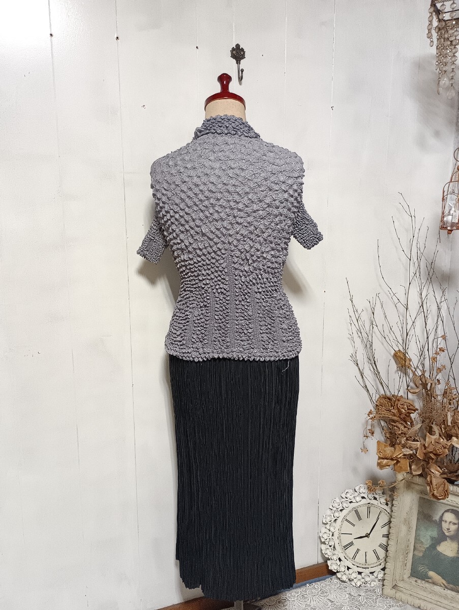 衿が付いたグレープリーツブラウスと
