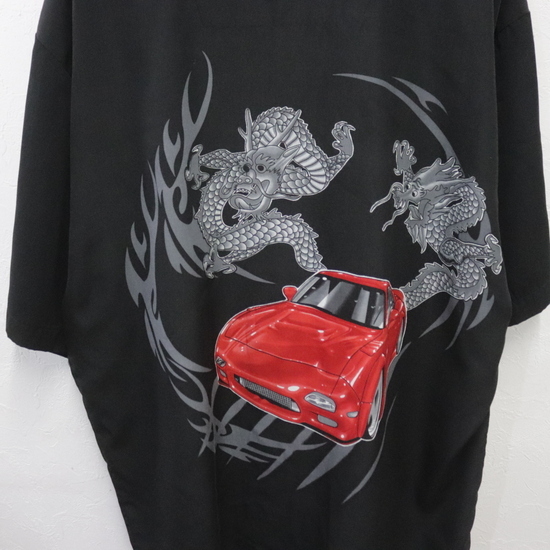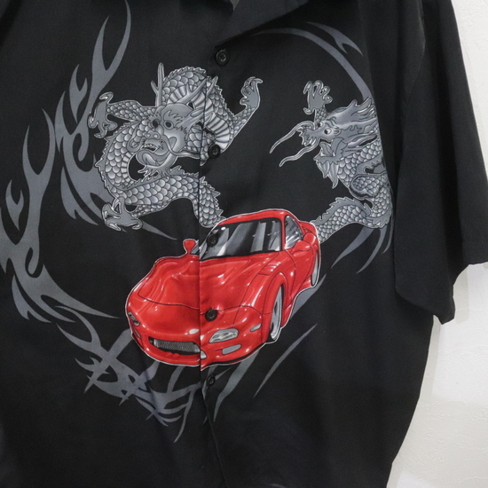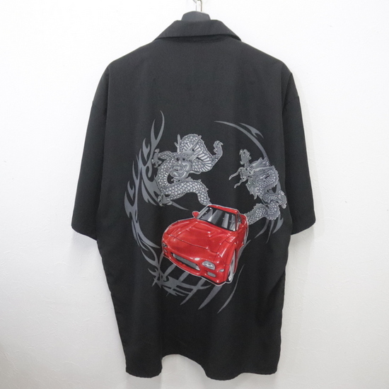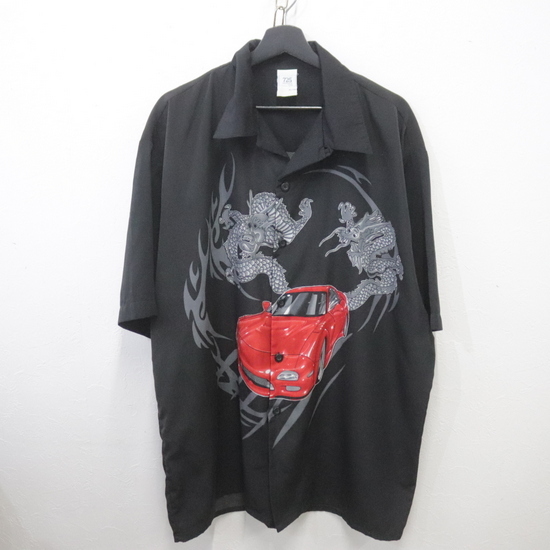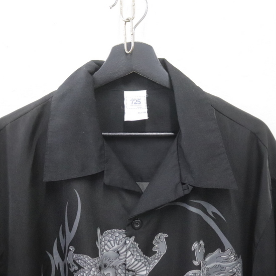 商品名 g514 2000年代製 725 半袖チカーノシャツ■00s 表記XLサイズ 黒 ブラック オープンカラー ドラゴン アメカジ ストリート 古着 ヴィンテージ