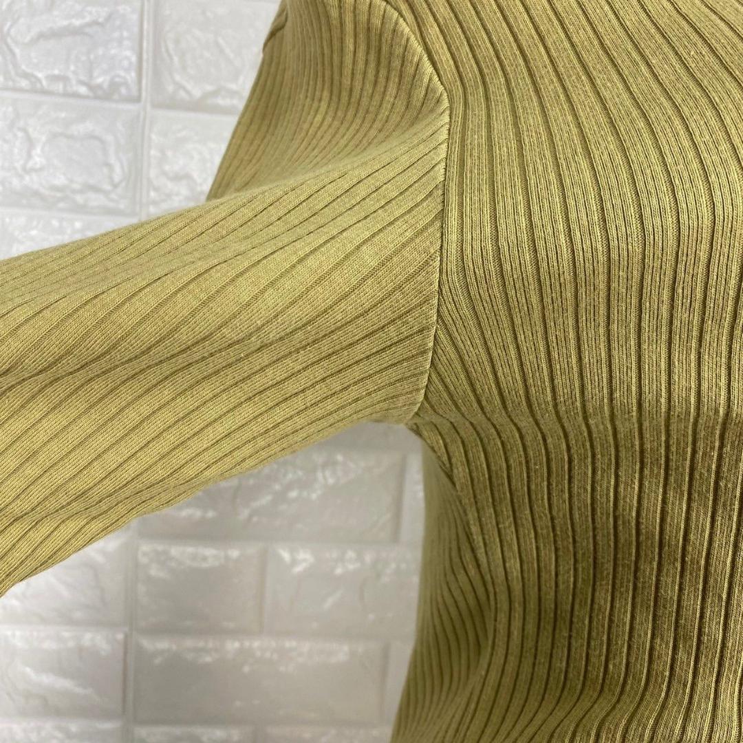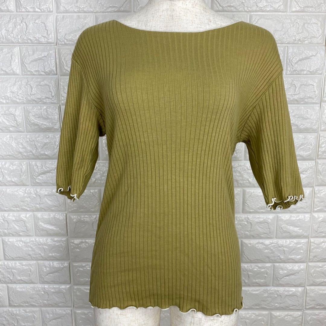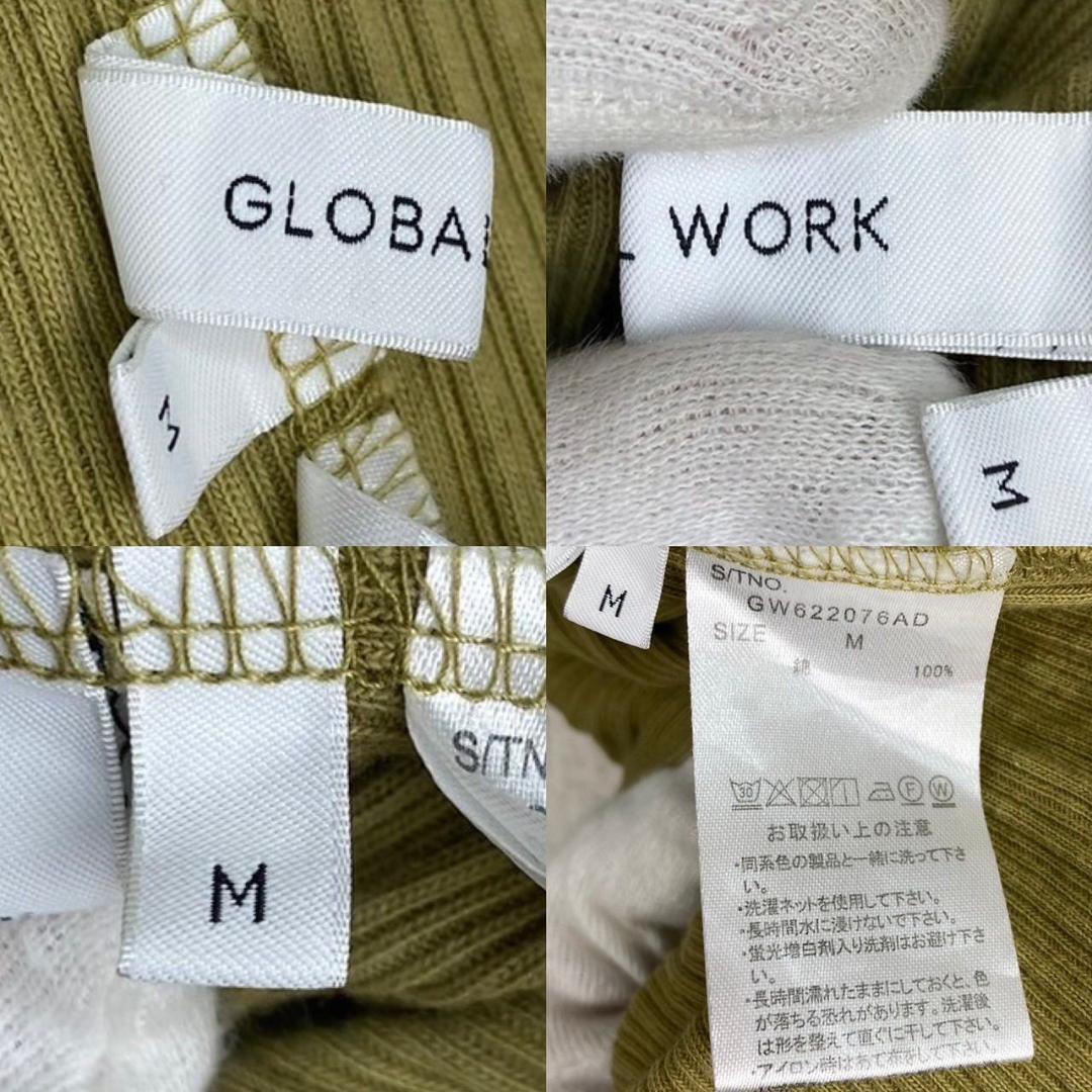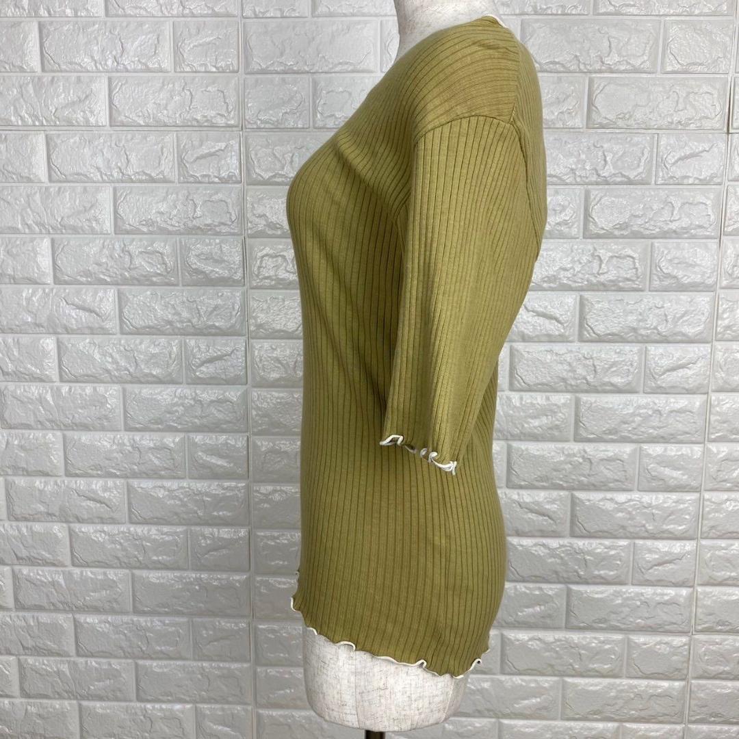 【AA1829】 グローバルワーク GLOBAL WORK M リブカットソー 半袖 スカラップ 袖フリル風 カーキ リブニット オリーブカラー