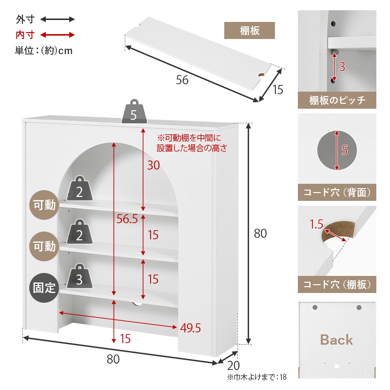 (約)幅80×奥行20×高さ80cm