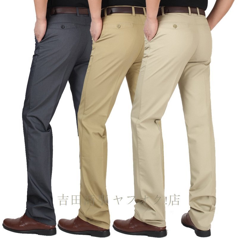★新品カーキ メンズ スラックス パンツ ゴルフパンツ スリム ズボン ビジカジ ビジネス ストレッチ 美脚 大きいサイズ ネイビー