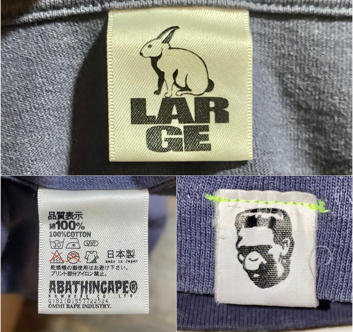 A BATHING APE/ベイシングエイプ Tシャツ 半袖 紺 Lサイズ/LARGRE 日本製 メンズ 古着 現状品