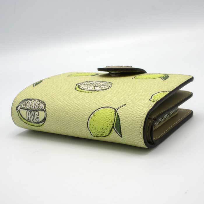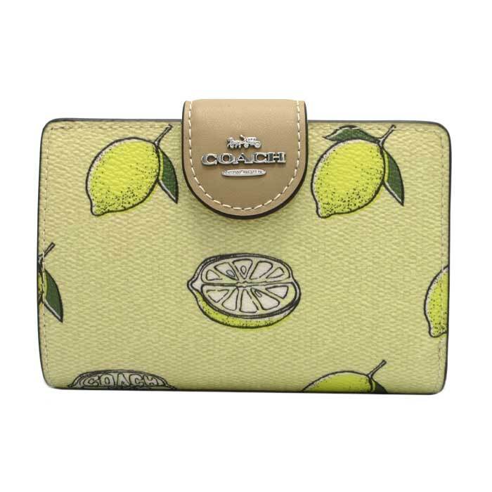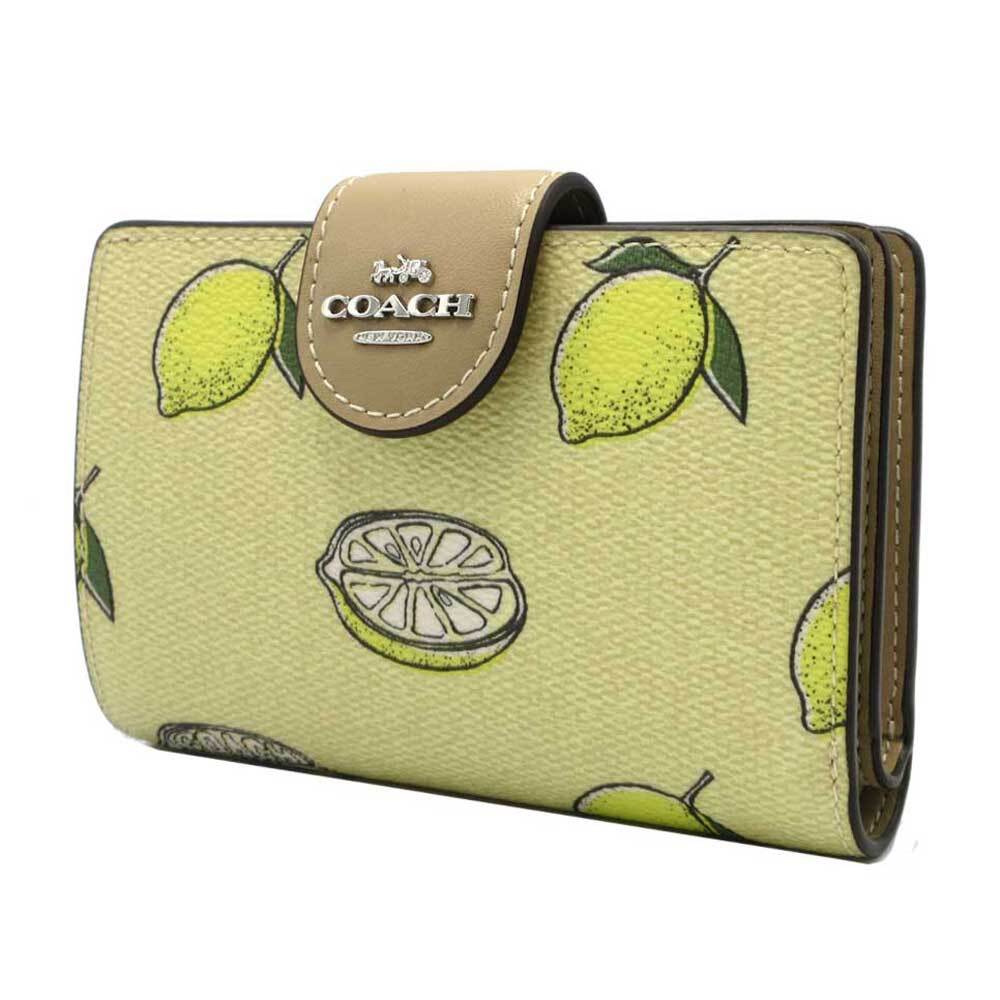 コーチ 二つ折り財布 COACH レモン プリント ミディアムコーナー ジップ ウォレット CAP02 SVXUC アウトレット レディース