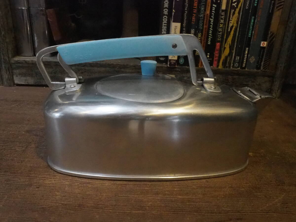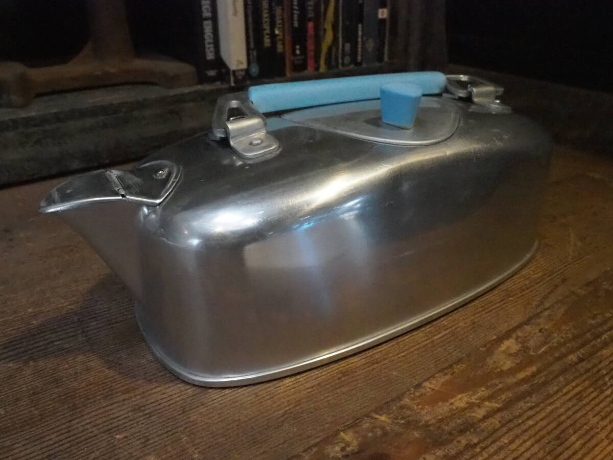 古道具の市で見つけた昭和レトロなアルマイトの麦茶ケトルです。