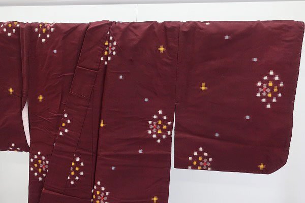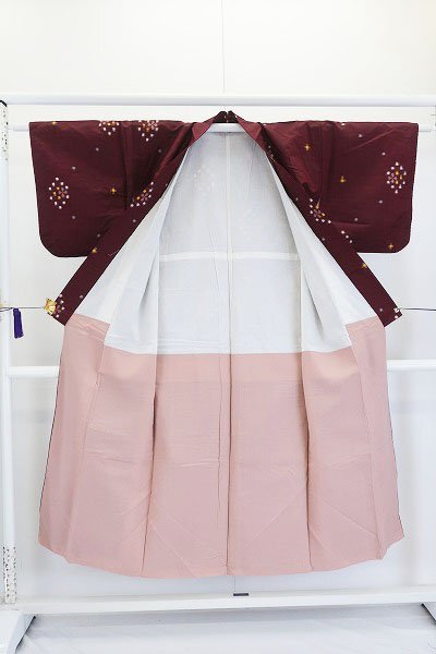 〔着物の色〕 臙脂色 〔八掛の色〕 薄ピンク 〔着物の素材〕 正絹 |