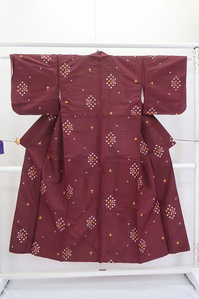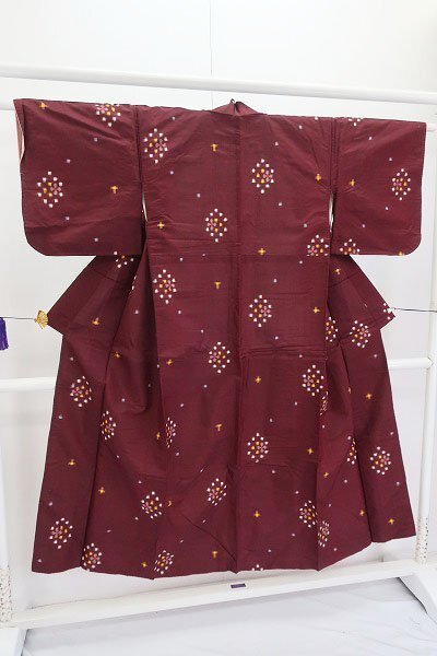 アンティーク 小紋 銘仙 身丈144.5m 臙脂色 大正ロマン レトロ 正絹 仕立て上がり kimono 着物フィ 19284 |