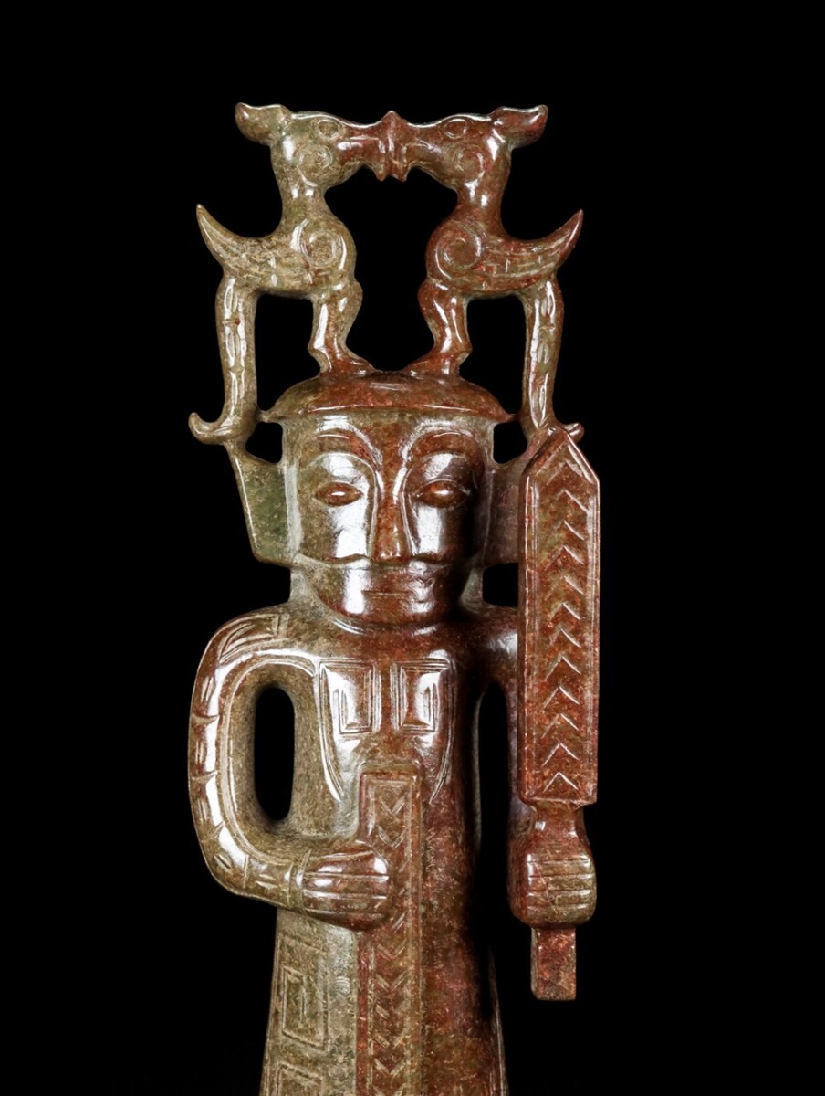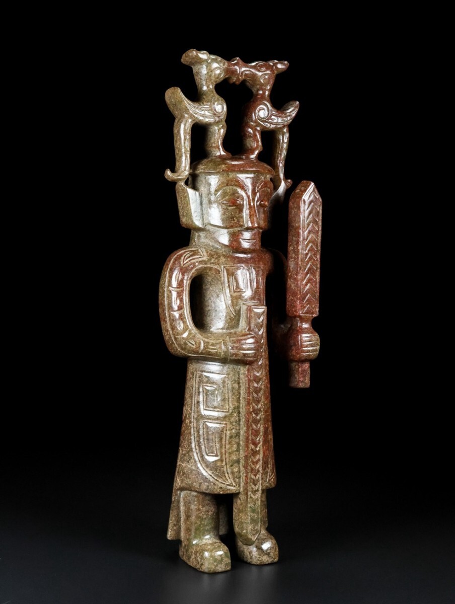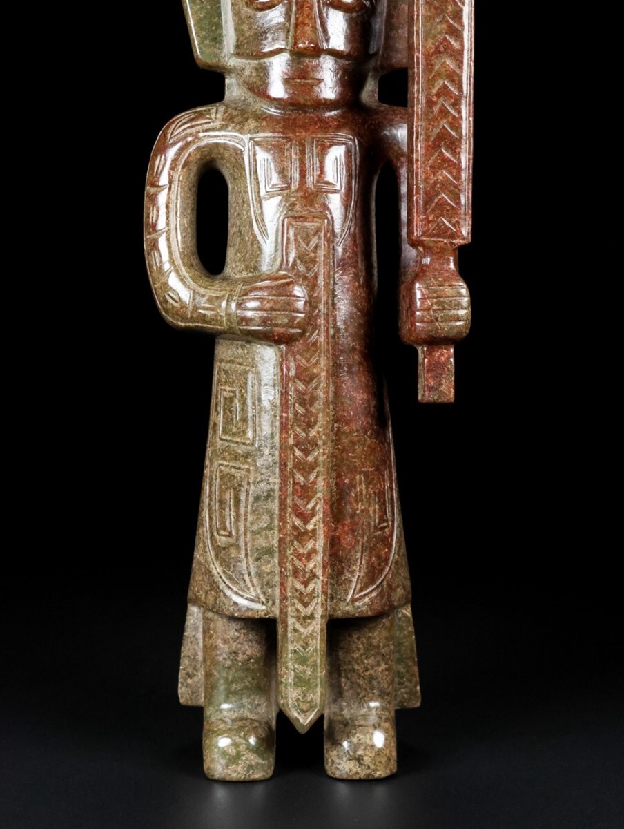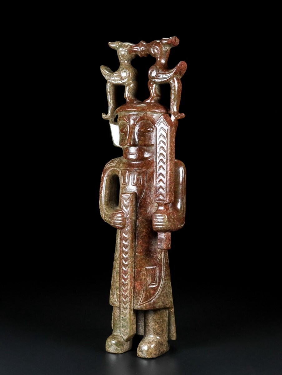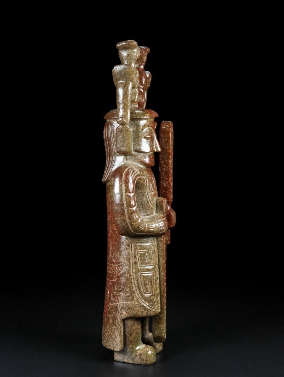 「時代物 和田玉 高古玉彫り 商周人舉剣」極細工 擺件 中国古賞物 古美術 旧蔵出
