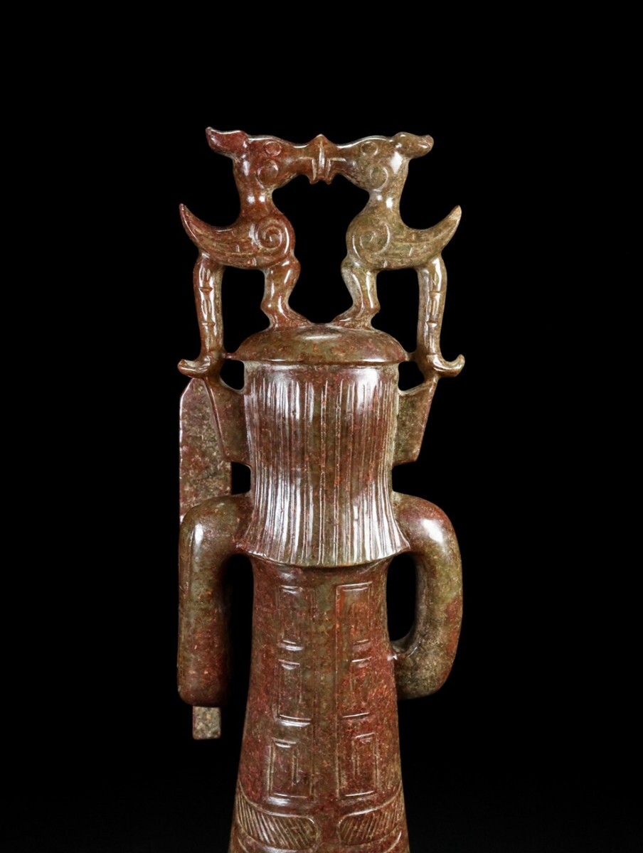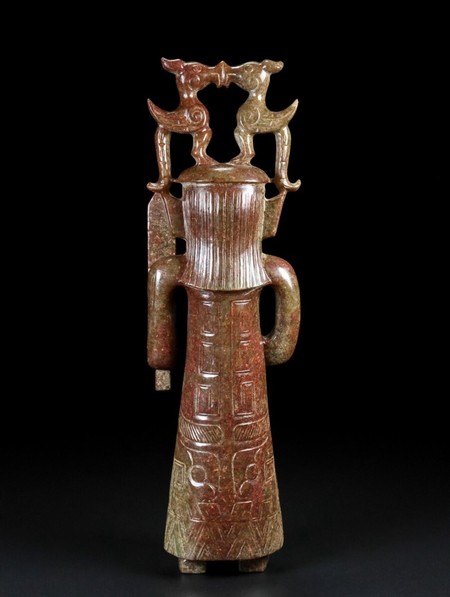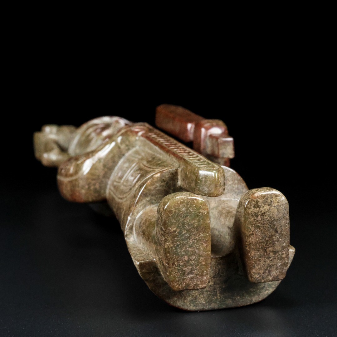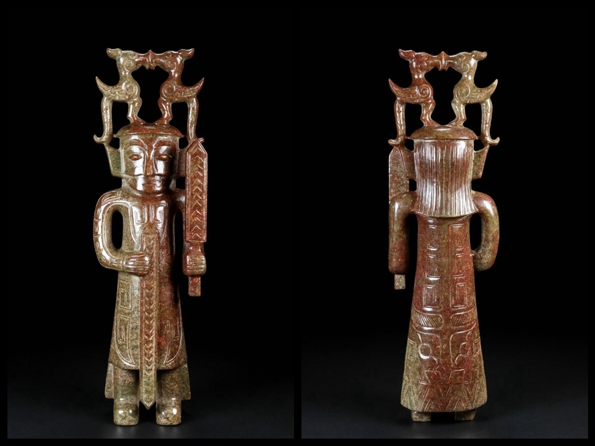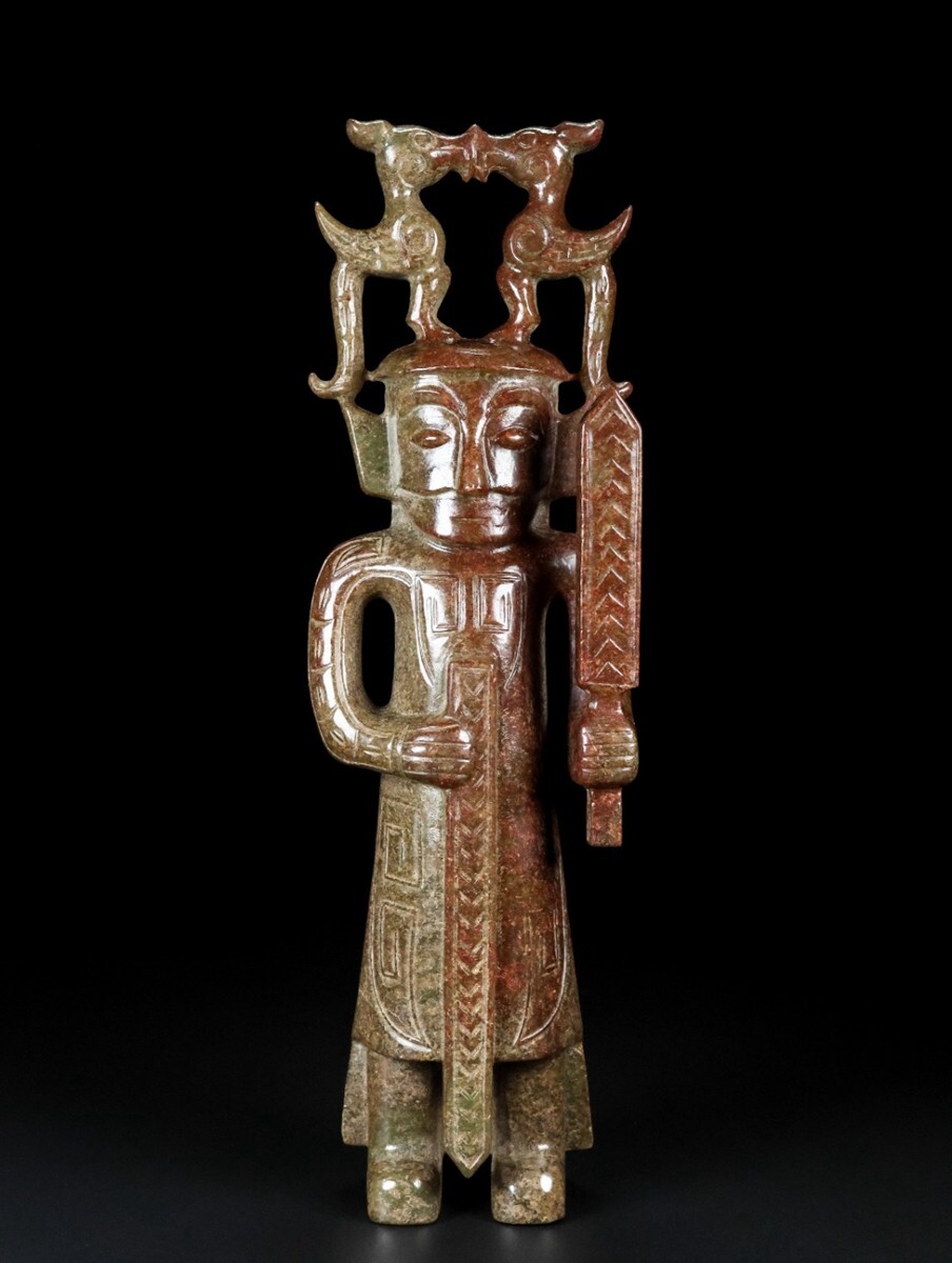 「時代物 和田玉 高古玉彫り 商周人舉剣」極細工 擺件 中国古賞物 古美術 旧蔵出