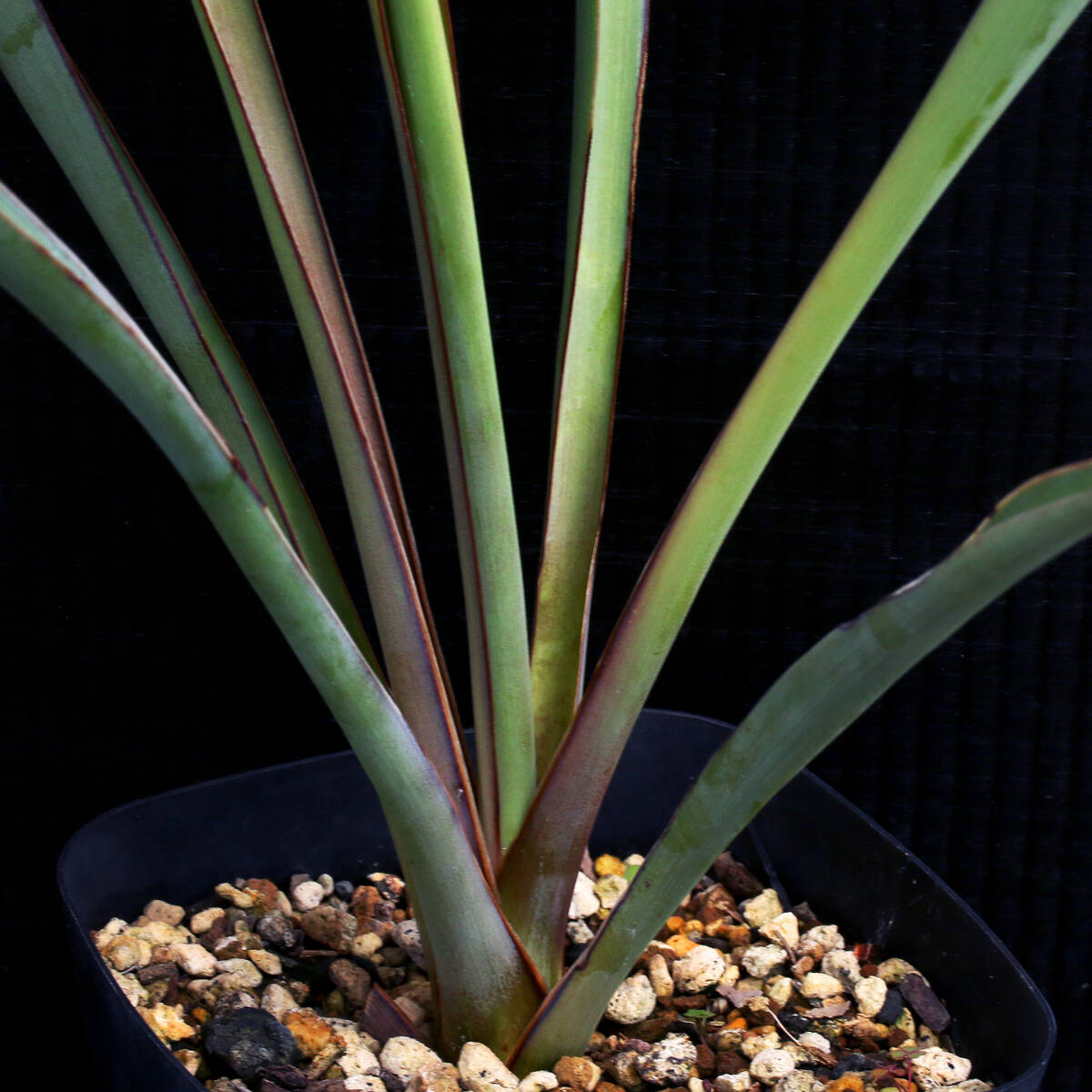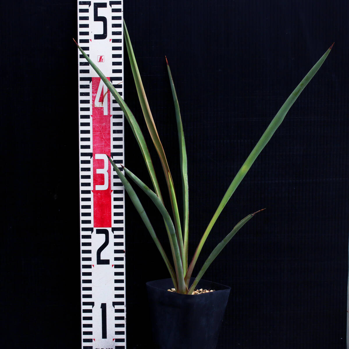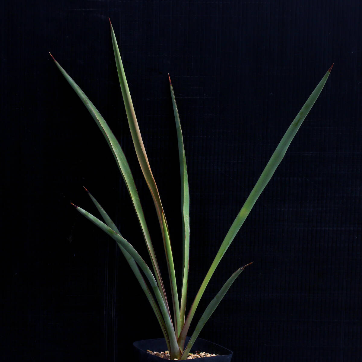 細長く硬いシルバーブルー~エメラルドグリーンの美しい葉を展開します