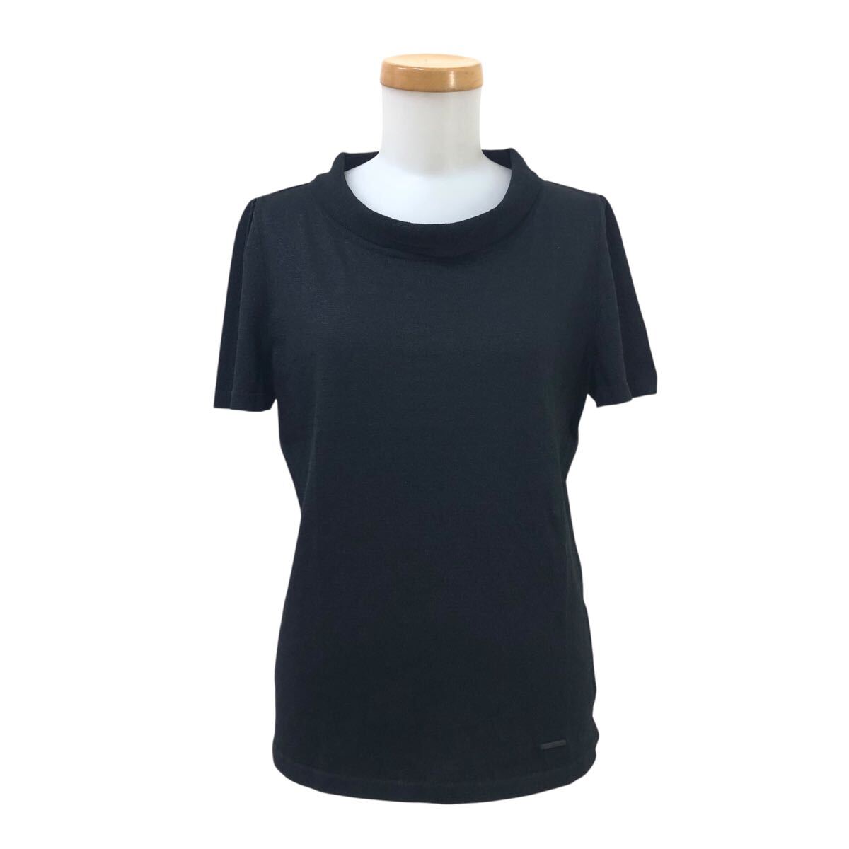 Nm310-40 BURBERRY LONDON バーバリー ロンドン 絹混 シルク混 半袖 ラメ ニット セーター プルオーバー トップス ブラック レディース 2