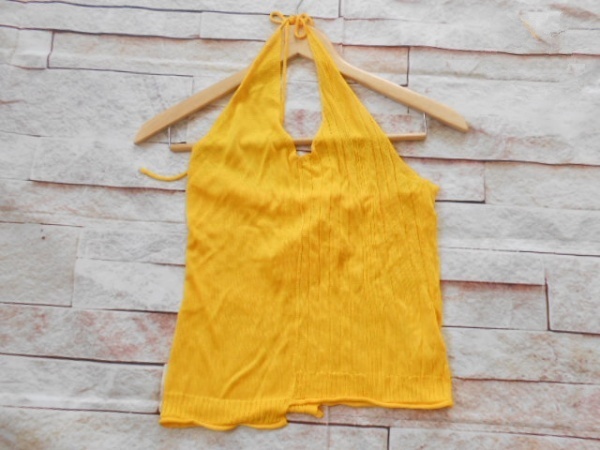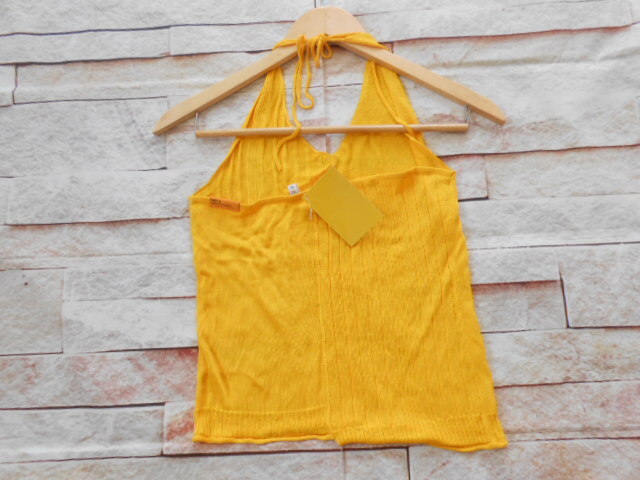 LD25◆WeSC/ウィーエスシー【XSサイズ】ホルターネック ニットキャミ 薄手 透けます 山吹色 タグ付き未使用