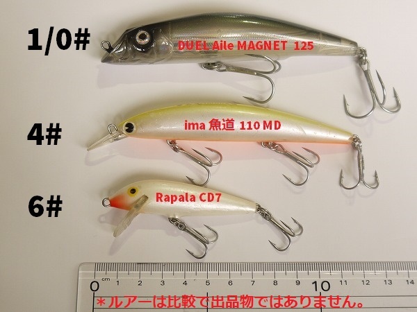 当方も釣りが好きで、おかっぱり、カヤック、ボートなど、あらゆるフィールドで出品物のフックを実際に使用しシーズンごとに、青物、根魚、シーバス等の釣果をあげております。個人的にはコストパフォーマンスの高い使えるフックだと感じておりますが、フックには個体差があります。フックに強いこだわりをお持ちの方、神経質な方はご購入を見送ってください。