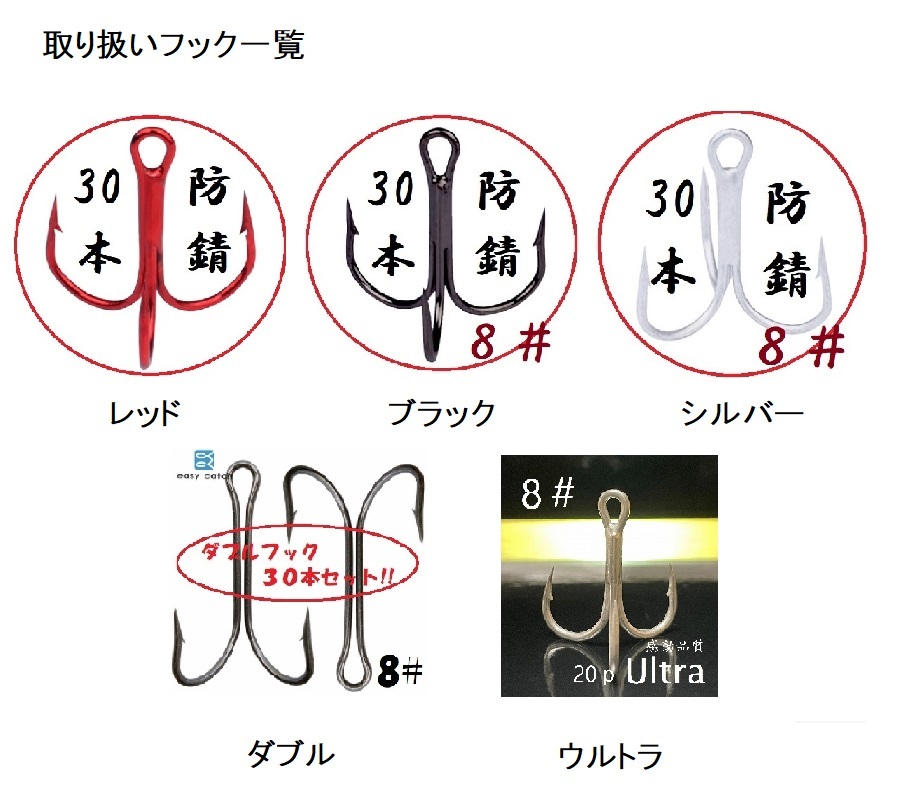 レッドフック「8#」 ★ ★ 30本セット!! トレブルフック トリプルフック 検索 ima タックルハウス ST