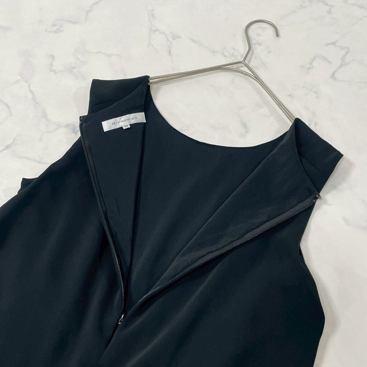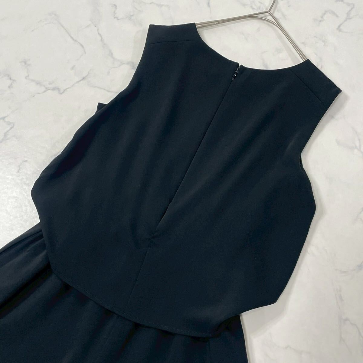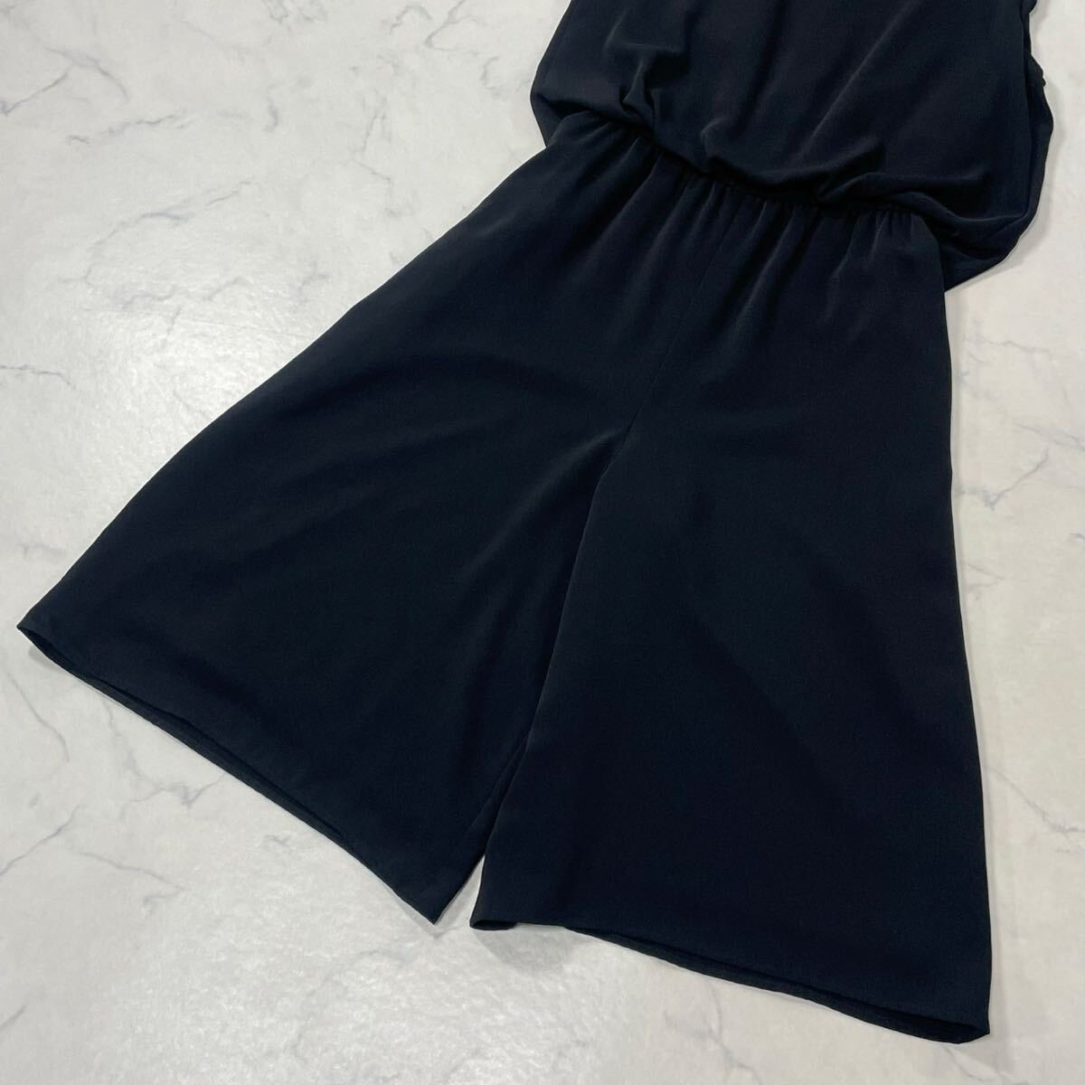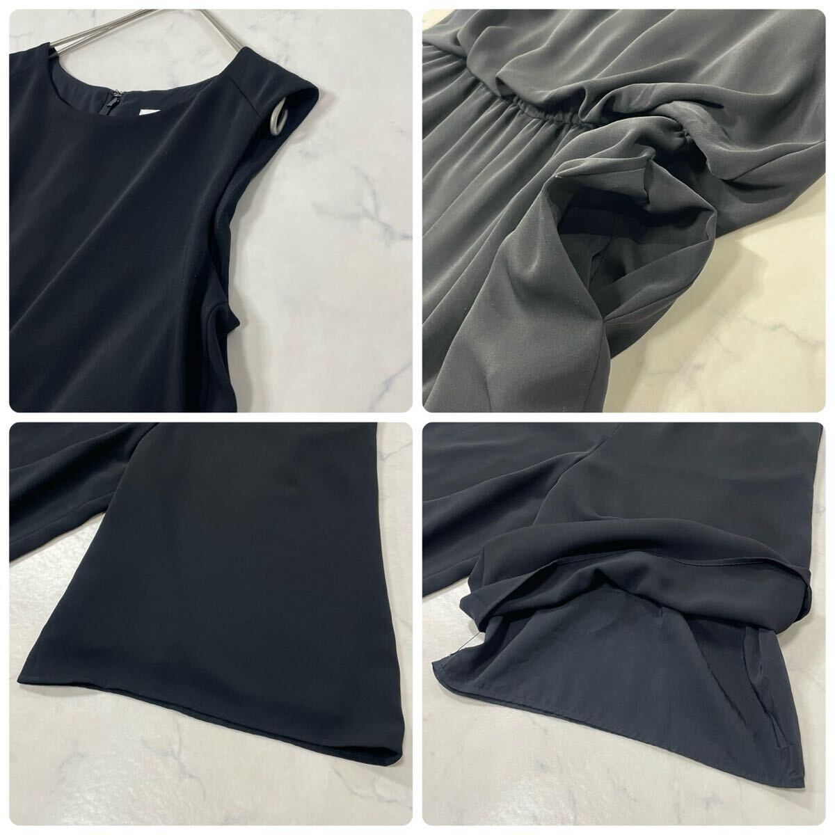 ワントーン 裏地付き ウエストゴム ジップ クルーネック ノースリーブ 七分丈 オールインワン