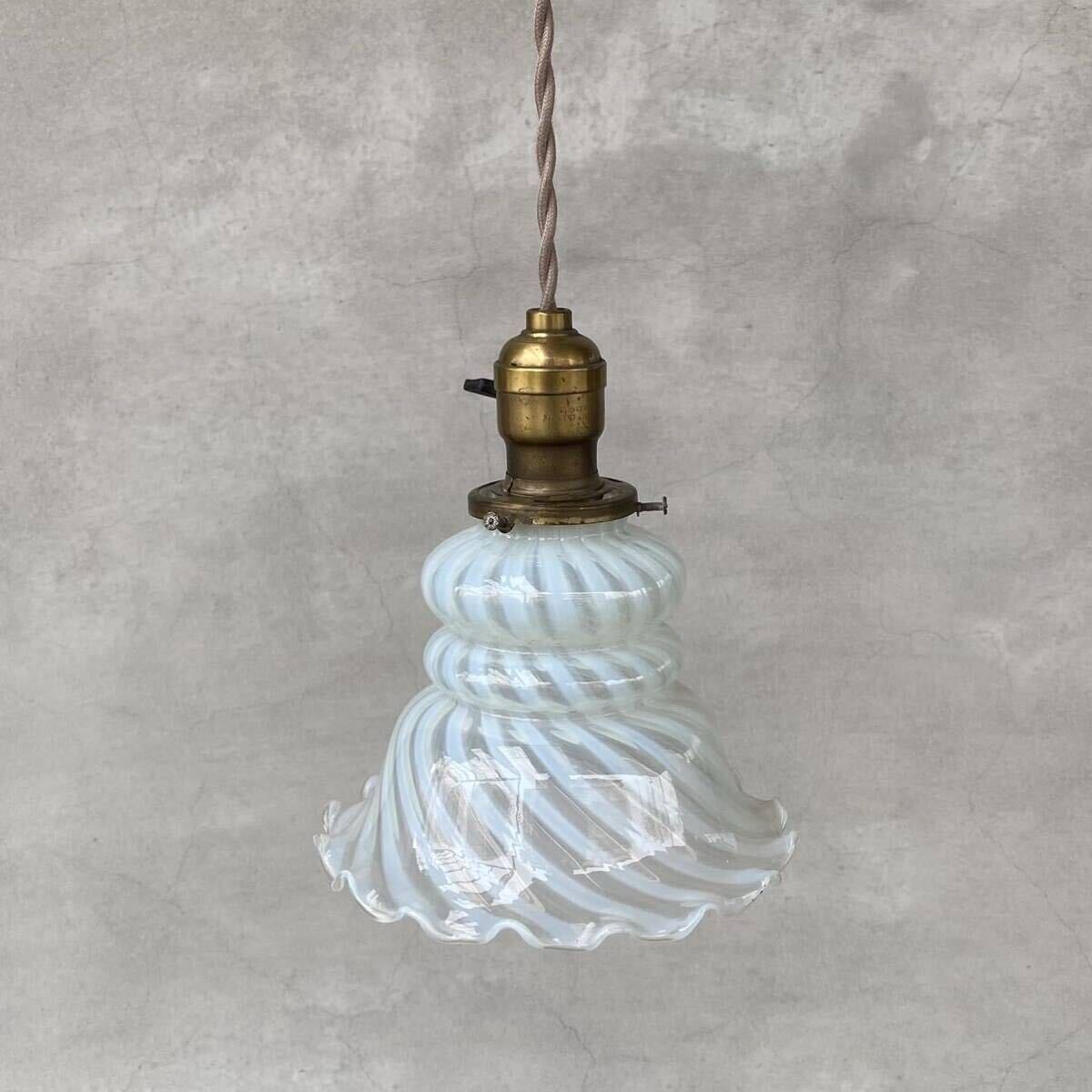 ヴィンテージ アンティーク 吊り下げ照明 オパールセントガラス / ガラスシェード ペンダントライト 天井照明 店舗什器 アメリカ ①