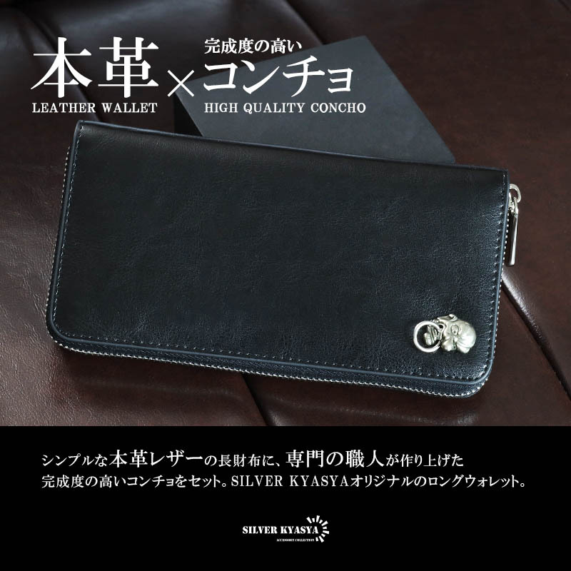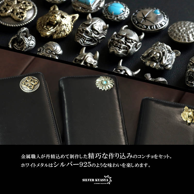 シンプルな本革レザーの長財布に、専門の職人が作り上げた完成度の高い高級感のあるコンチョをセット。SILVER KYASYAオリジナルのロングウォレットです。