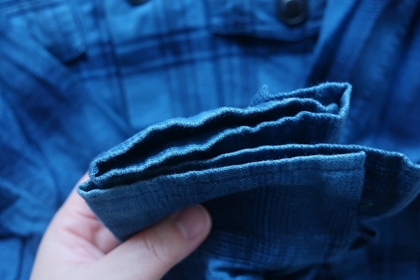 襟の折り目に薄汚れ、生地に風合いと薄汚れはございますが、