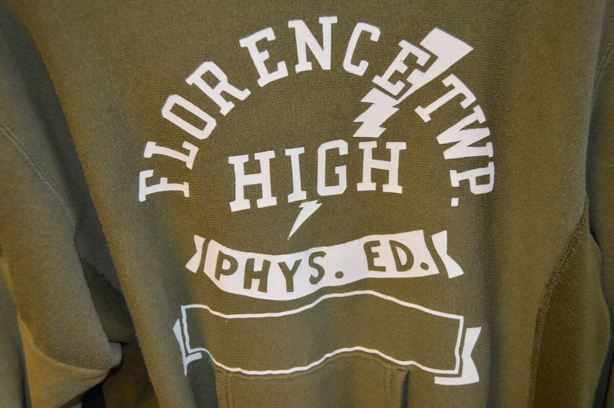 SAMPLEタグ付 カスタム試作品? 70s 復刻 チャンピオン リバースウィーブ 緑単色 緑タグ 4段プリント MEDIUM Champion REVERSE WEAVE 、