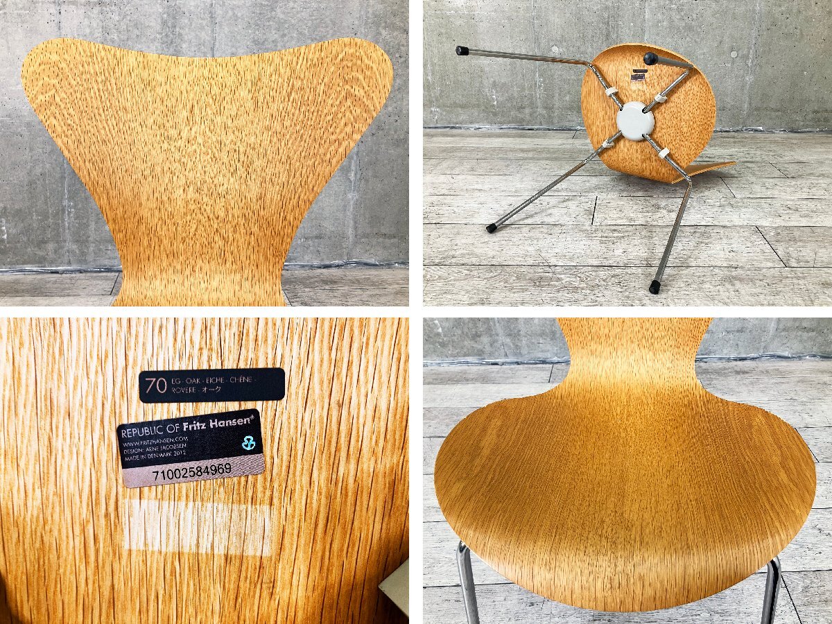 | ■北欧家具の代名詞『フリッツハンセン社』の『セブンチェア』です。 洗練されたたデザインはオフィスユースやホームユースと空間に左右されず馴染んでくれます。 中古市場でも人気のお品物ですので、お早めにご検討下さい。 新品定価:¥94,380(税込み) ■材/オーク ■サイズ/W500 x D520 x H790 SH430 ■状態/全体的に使用に伴う細かいすれ傷が御座います。 機能を損なうダメージはなく、日常使用には問題ございません。 |