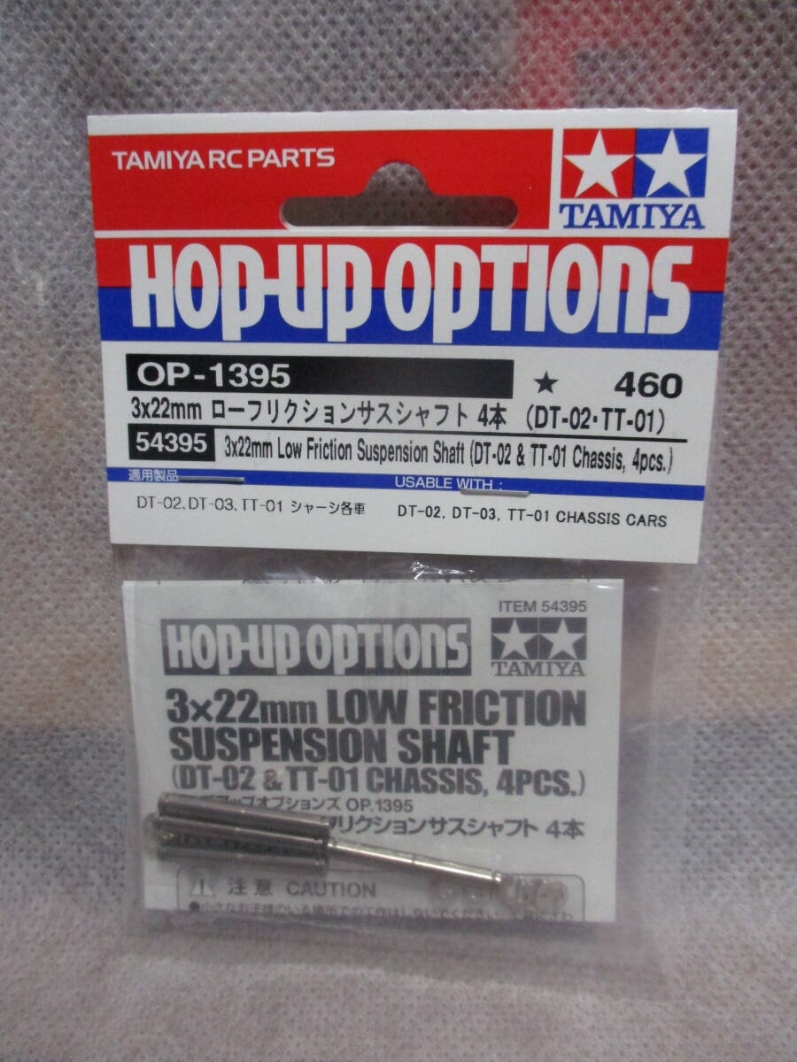 未使用未開封品 タミヤ OP-1395 3x22mm ローフリクションサスシャフト 4本(DT-02・TT-01) 54395、になります。