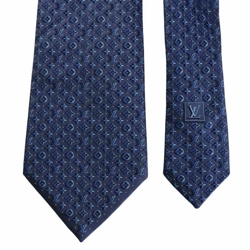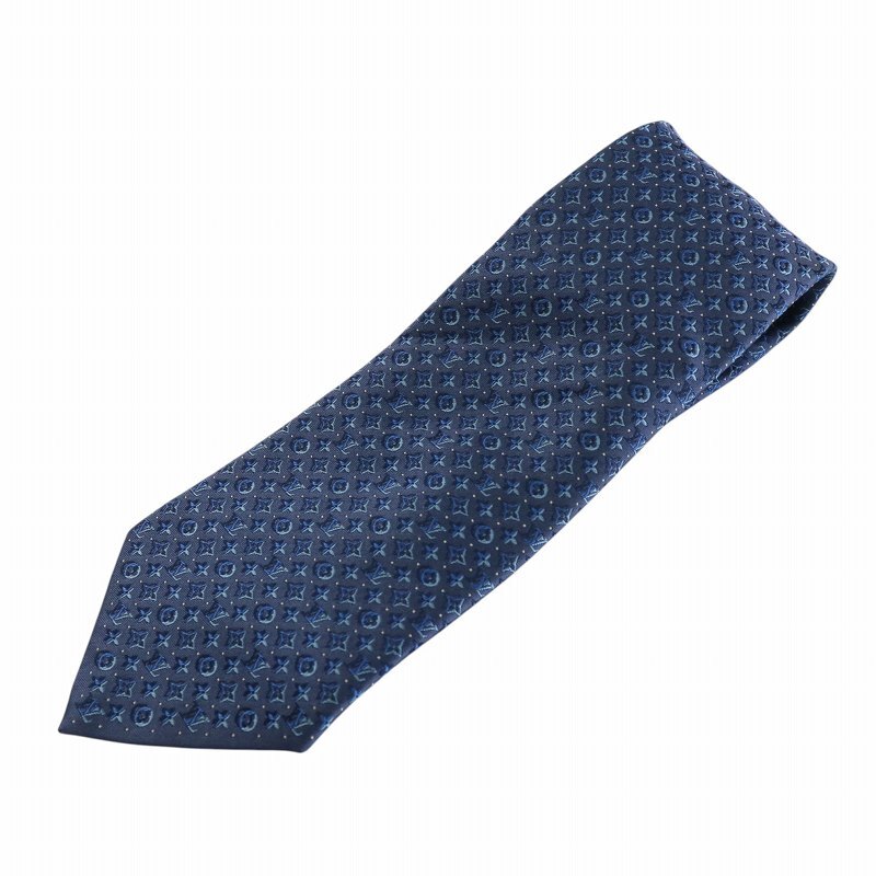 ルイヴィトン LOUIS VUITTON モノグラム クラヴァット ネクタイ 絹 シルク レギュラータイ 総柄 青 ブルー M73529