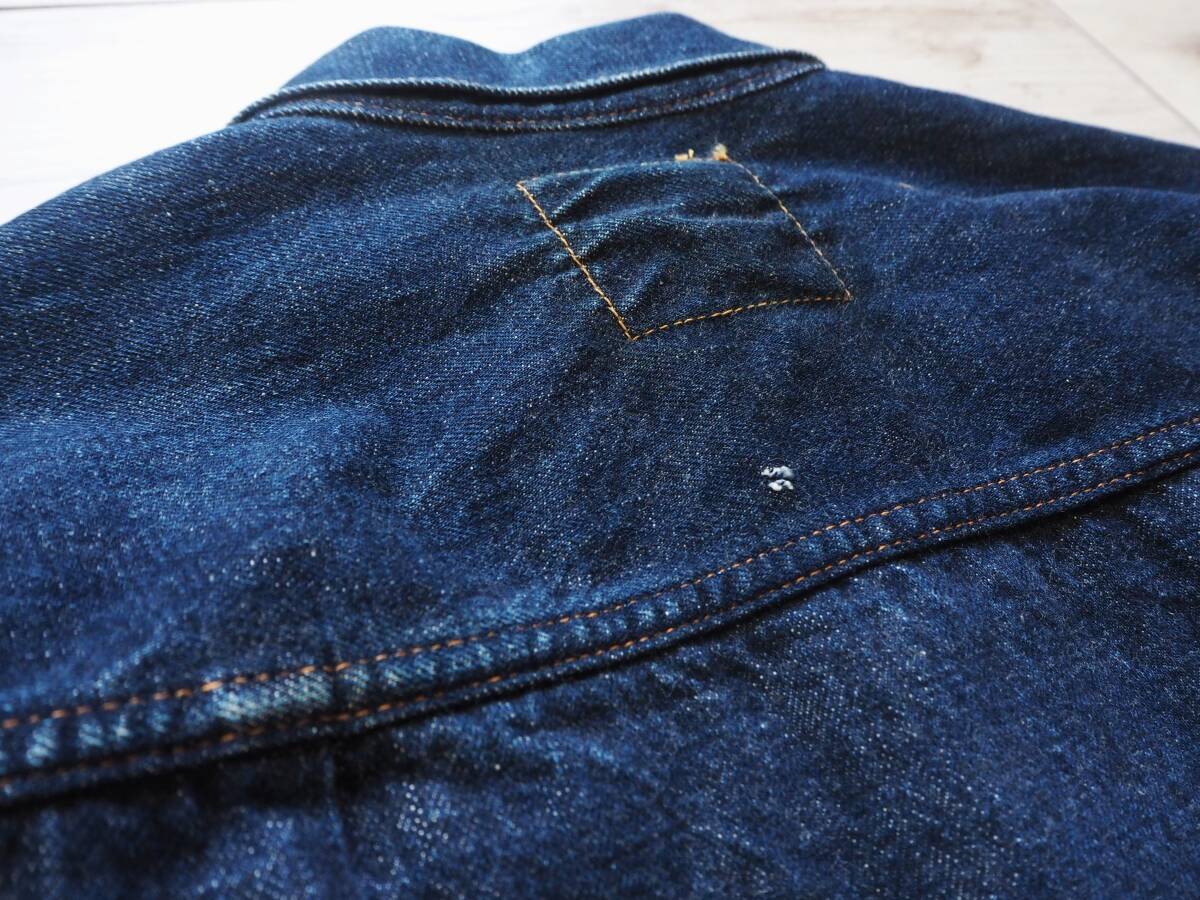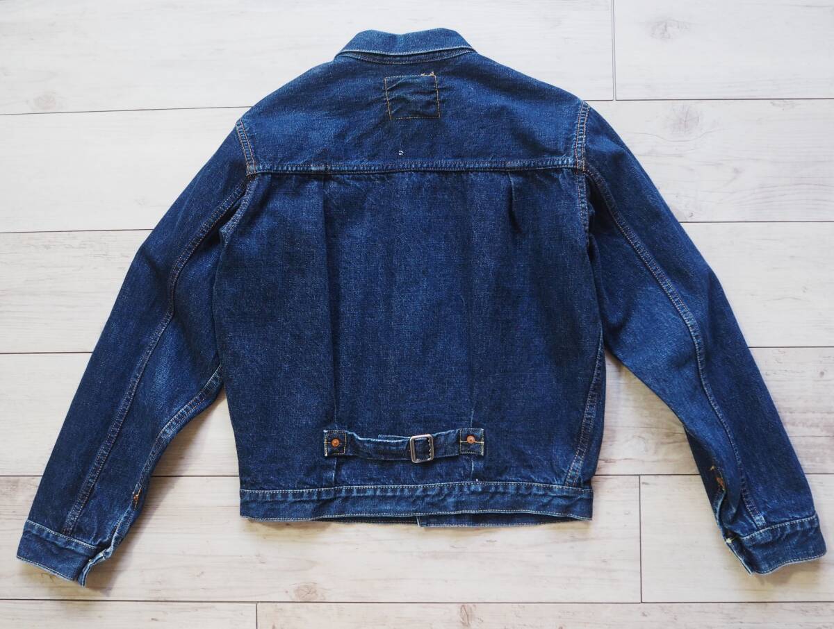 こちらは旧ドゥニーム初期 ファーストタイプデニムジャケット Lot306です。 通称、1stと呼ばれる506xxの中でも1936年-大戦前のモデルを復刻した一着です。 当時デニムブラウスと呼ばれるボックスシルエットは前身2タック、バックにバックルバックを備えた1ポケットのスタイル。 ヴィンテージ同様、フラップ裏にはライトオンスデニムやポケットのみ運針の大きな縫製、オレンジ糸ステッチにイエローを部分に使うディテール等本格的。 ヘビーオンスセルビッチデニムを用いた世界的に名高いジャパンクオリティによる復刻モデルです。 旧ドゥニーム初期 ファーストタイプデニムジャケット M 濃紺ヴィンテージ Lot306 size M 素材 100% COTTON 15.5ozセルビッチデニム、レザーパッチ、赤タブ、ポケット裏ライトオンスデニム、シンチバッグ、見返し裏耳付き、打ち抜き銅リベット等。 MADE IN JAPAN D-HG1118 オリゾンティ初期 実寸 身幅 54cm 肩幅 44cm 着丈 57cm (衿天巾付け根から採寸) 袖丈 60cm コンディション インディゴが熟成され、大変色味の良い濃紺です。汚れ等ありません。 背面に小さな引っかけ程度はありますが気にならない程度のものです。 状態良く大変希少な一着です。この機会に是非! 宜しくお願い致します。 |