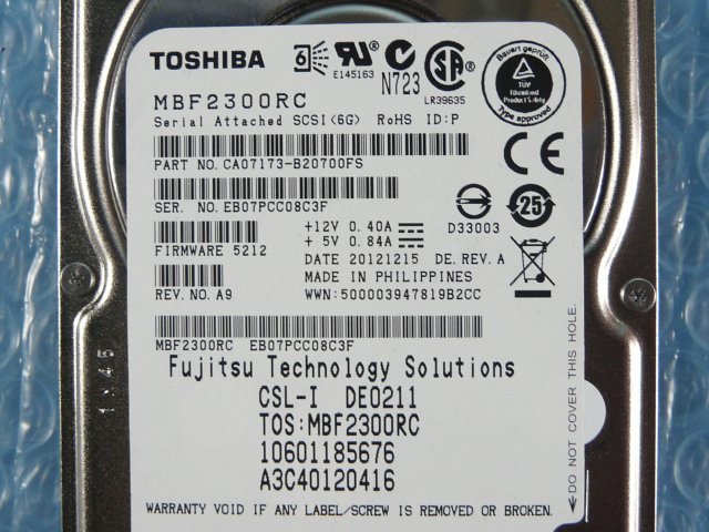 TOSHIBA MBF2300RC 300GB 2.5インチ SAS 6Gb 10K(10000)rpm (A3C40120416) ![]() | |||||||||||||