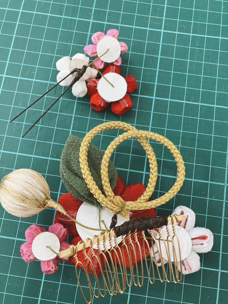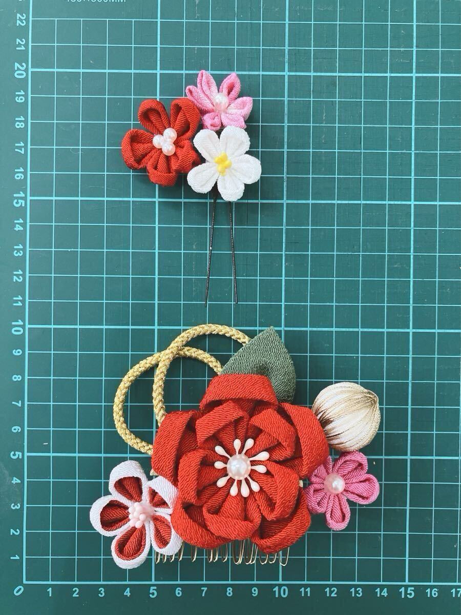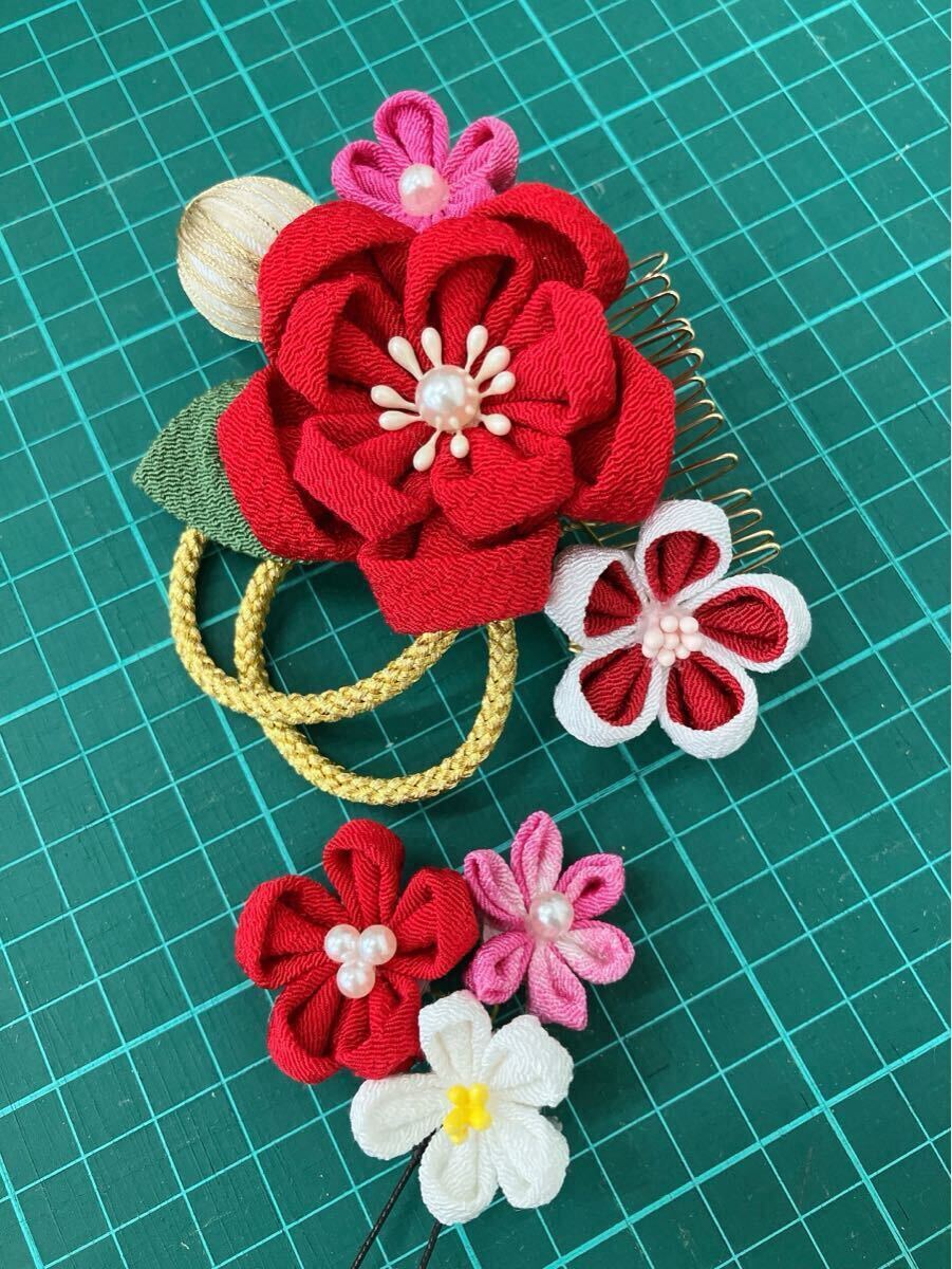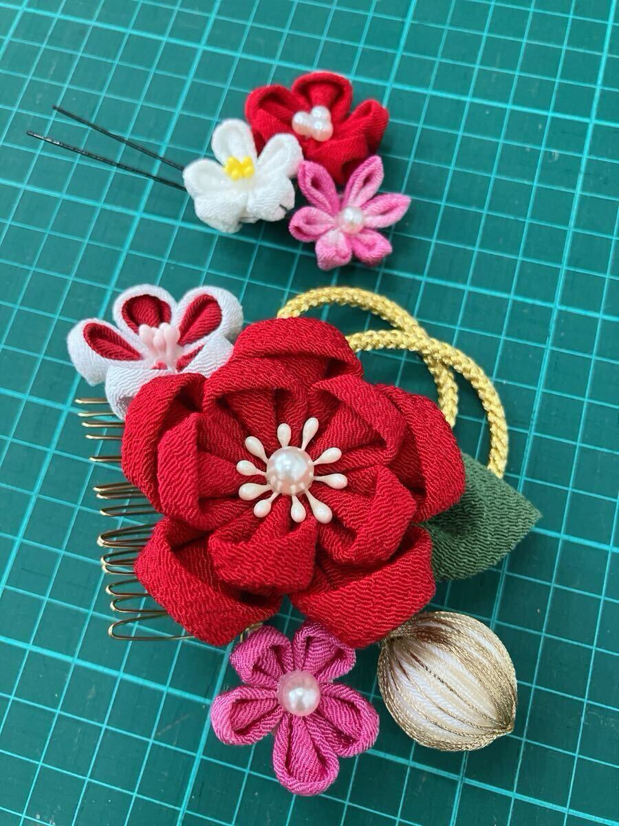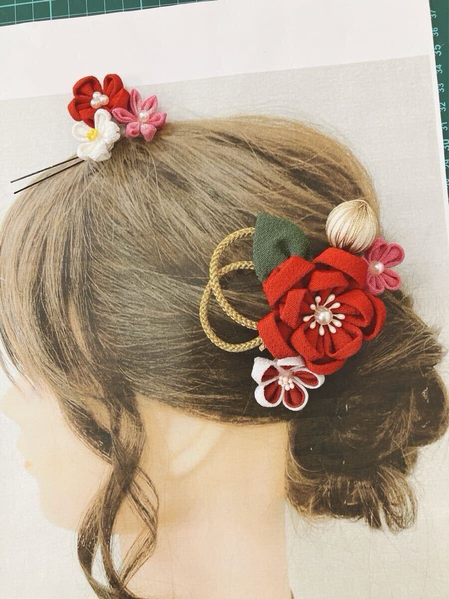 髪飾り つまみ細工 成人式 卒業式 七五三 振袖 和装 着物 送料無料 赤 RN522