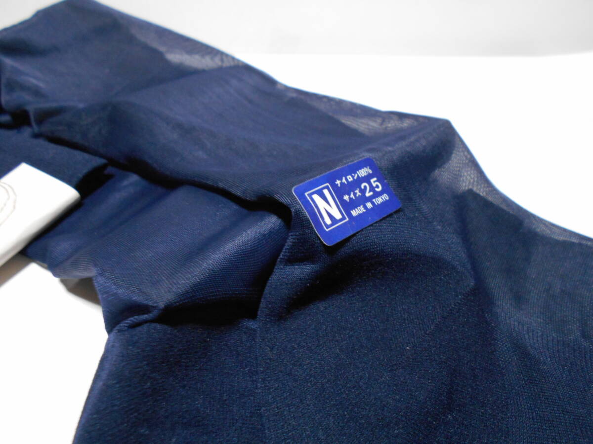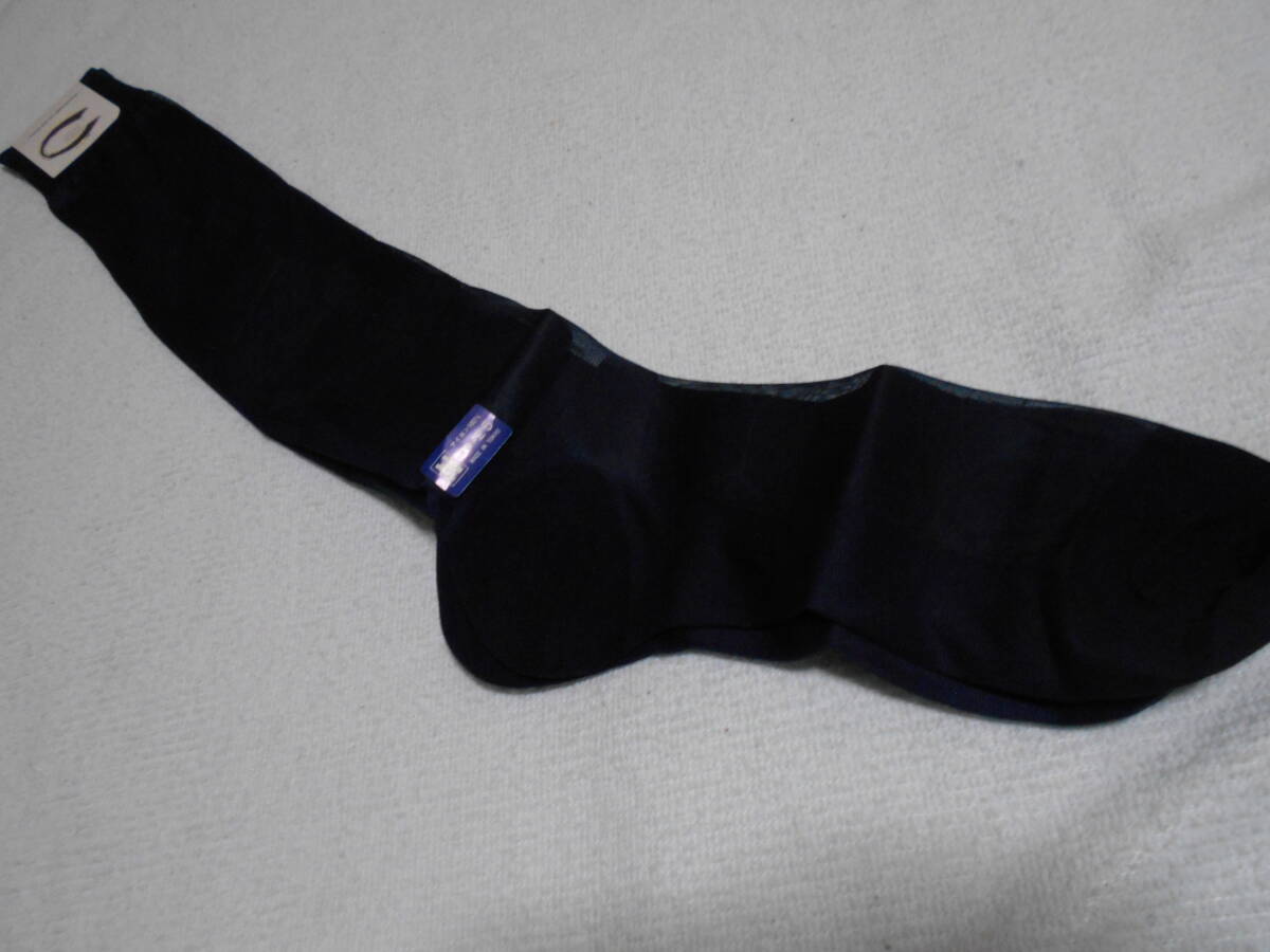 ★レトロ ハイソックス 紳士靴下 ナイロン 紺色 ドレス25㎝ ビジネス メンズソックス 傷あり シースルー 薄手ハイゲージ 光沢①