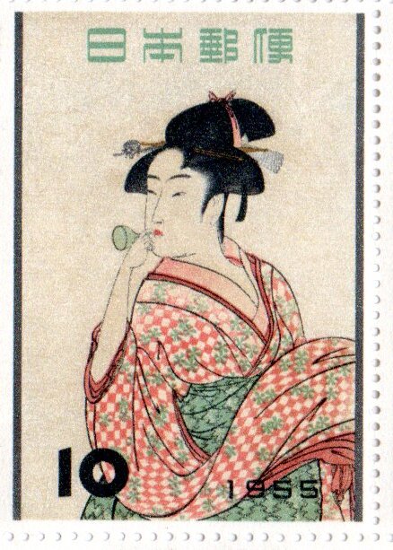 1955年 切手趣味週間 ビードロを吹く娘 10面シート