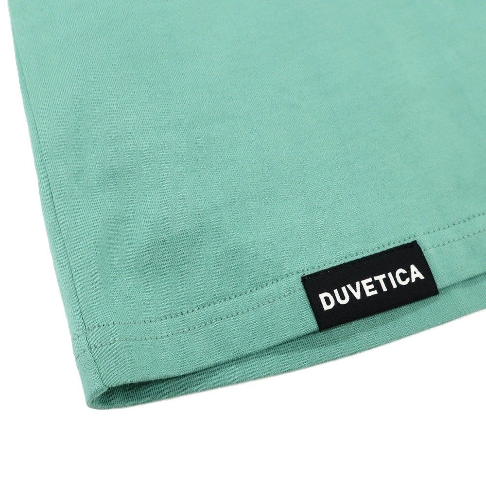 さらりとした柔らかなコットン生地を用いた、クルーネック半袖Tシャツです。グリーン系のボディに、ブランドロゴ「DUVETICA」を大胆に配したシンプルかつ洗練された一着。フロントにはロゴは光の角度で表情を変えるシャドーストライプ調のプリント、背面ネック下には立体感のあるラバーブリントが施され、控えめながらもしっかりと存在感を放ち、春夏のスタイリングに映える一着です。
