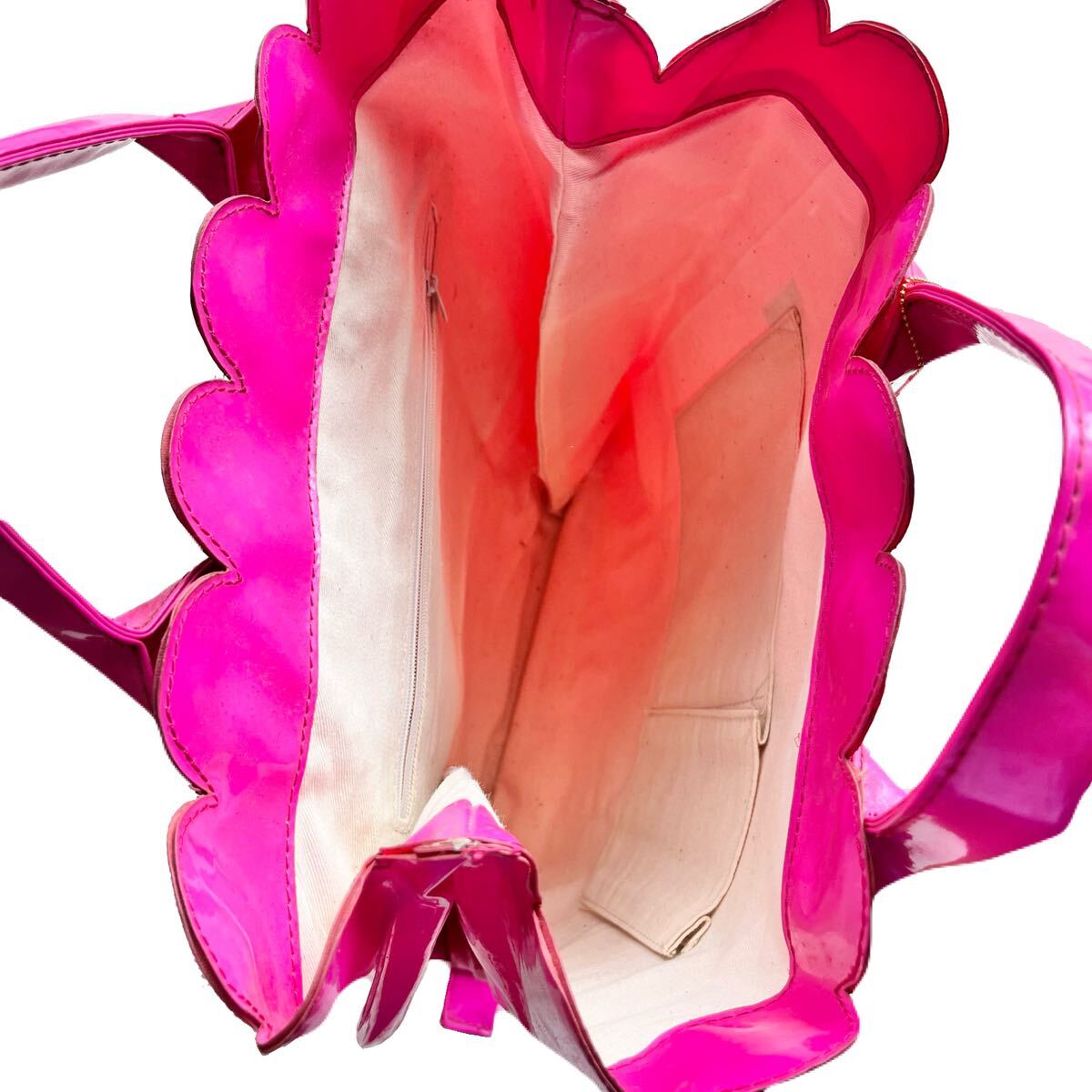 水や汚れが付きにくいエナメル素材のハンドバッグです。