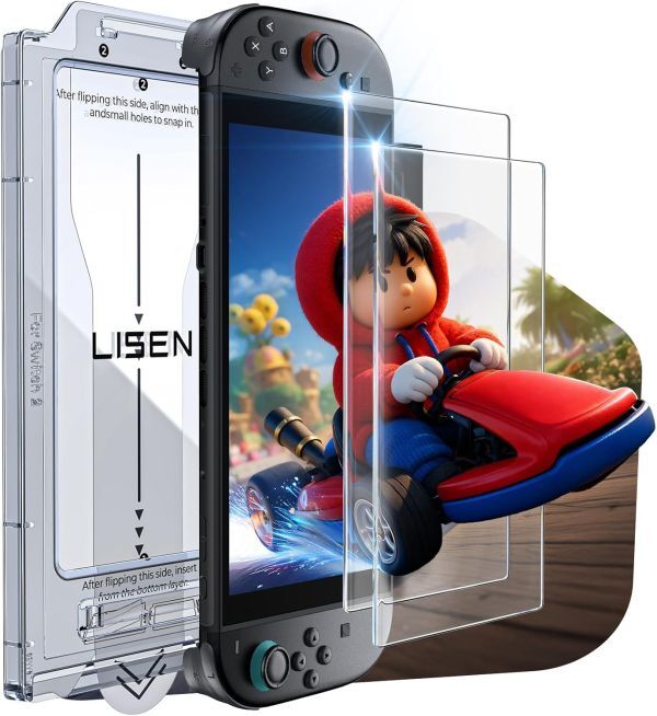 送料無料!☆新品★LISEN switch 2 保護フィルム【2枚入り】全面保護 強化ガラス 対応 スイッチ2 自動貼り付けキット付き |対応