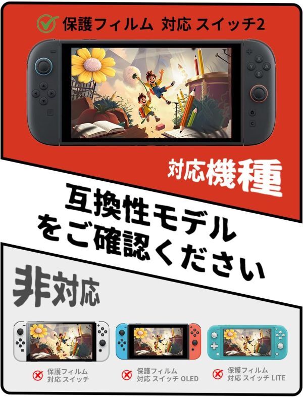 【対応機種Switch 2専用】本製品は2025年発売予定のSwitch 2専用に開発され、画面の端から端までぴったりと保護します。注意:画面に元々貼られている保護フィルムは剥がさないでください。既存のフィルムの上に直接、この強化ガラス保護フィルムを貼っても、機能や性能に影響はありません。(24時間以内にお客様に満足できる返事を差し上げます。商品の問題に対しては、無料で交換または 全額返金 いたしますので、ご安心して弊社の製品をお買い求めください)