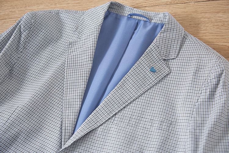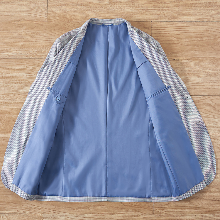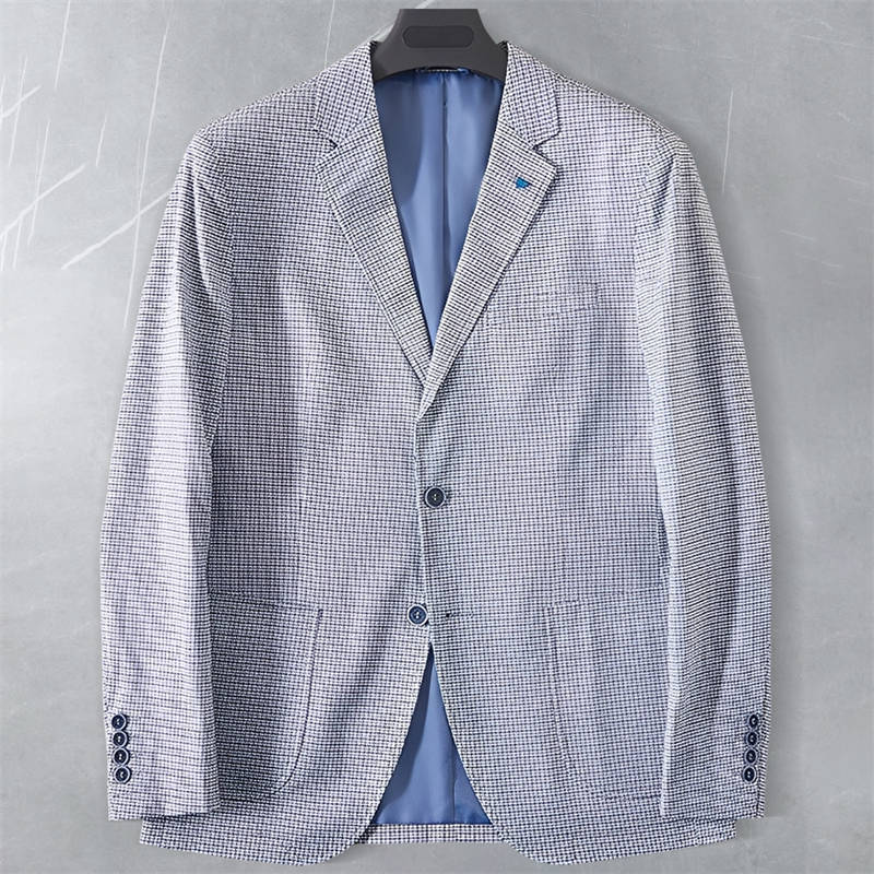 P097-2XL新品■千鳥格子 テーラードジャケット メンズ スーツ ジャケット 薄手 通勤 春夏 カジュアル ブレザー 紳士 アウター/ブルー