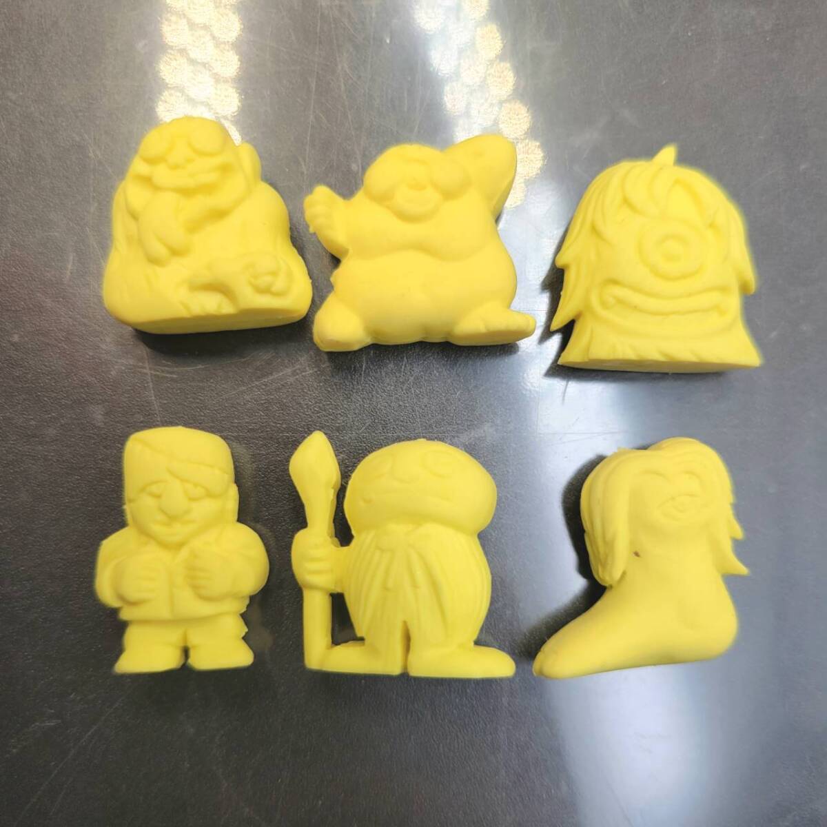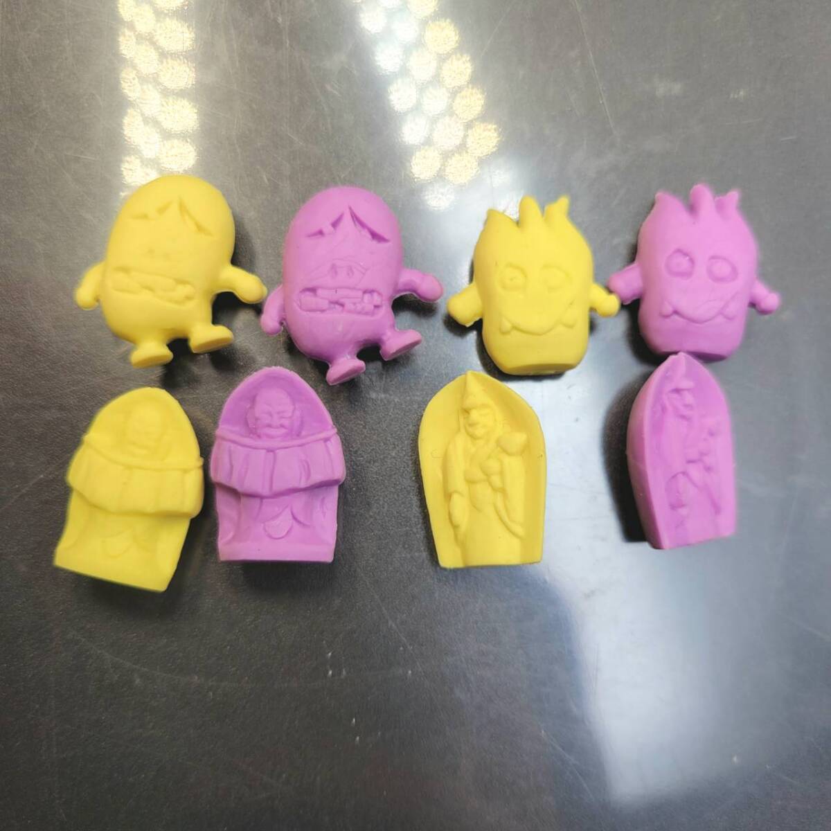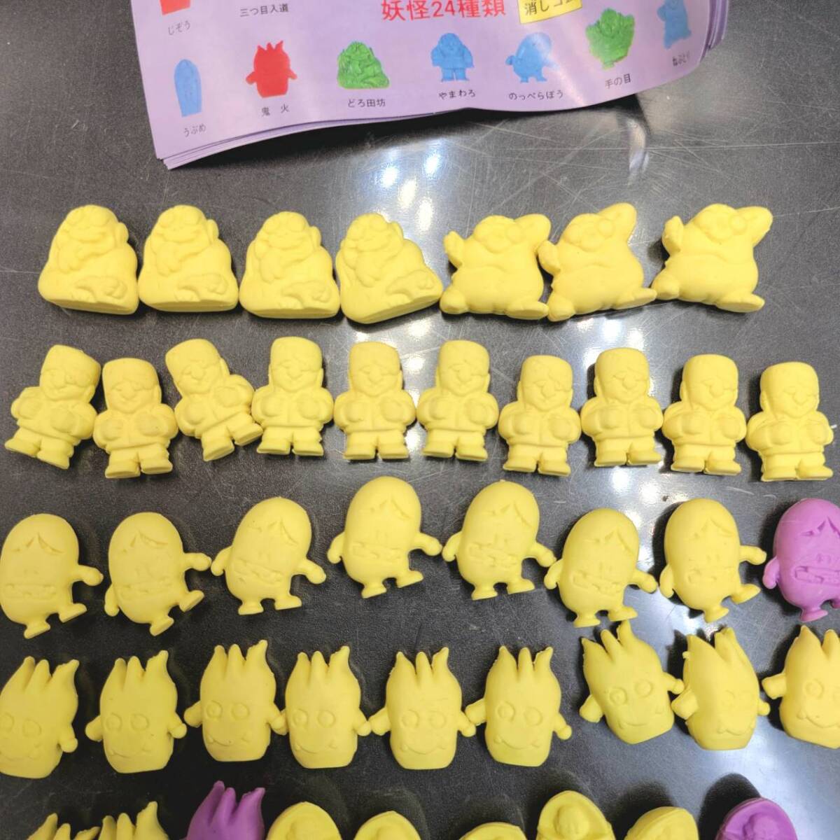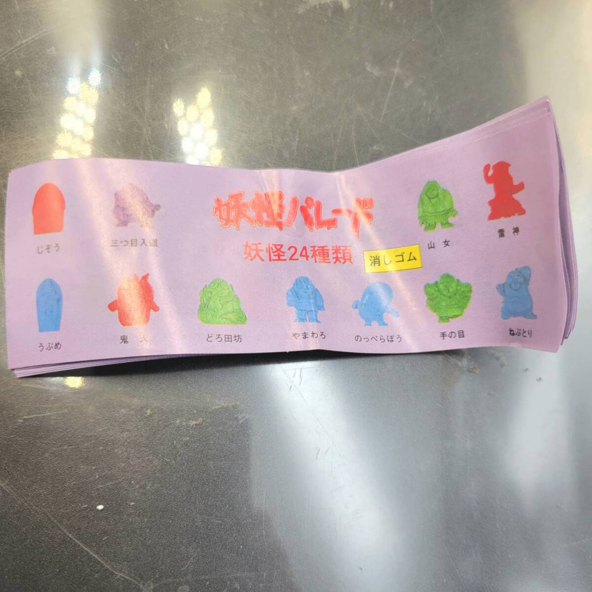 ガチャ コスモス? 妖怪パレード 消しゴム 全24種のうち10種 57個 台紙付き 駄菓子屋 おもちゃ 塩ビ 人形 昭和 レトロ 当時物 管理コ⑭