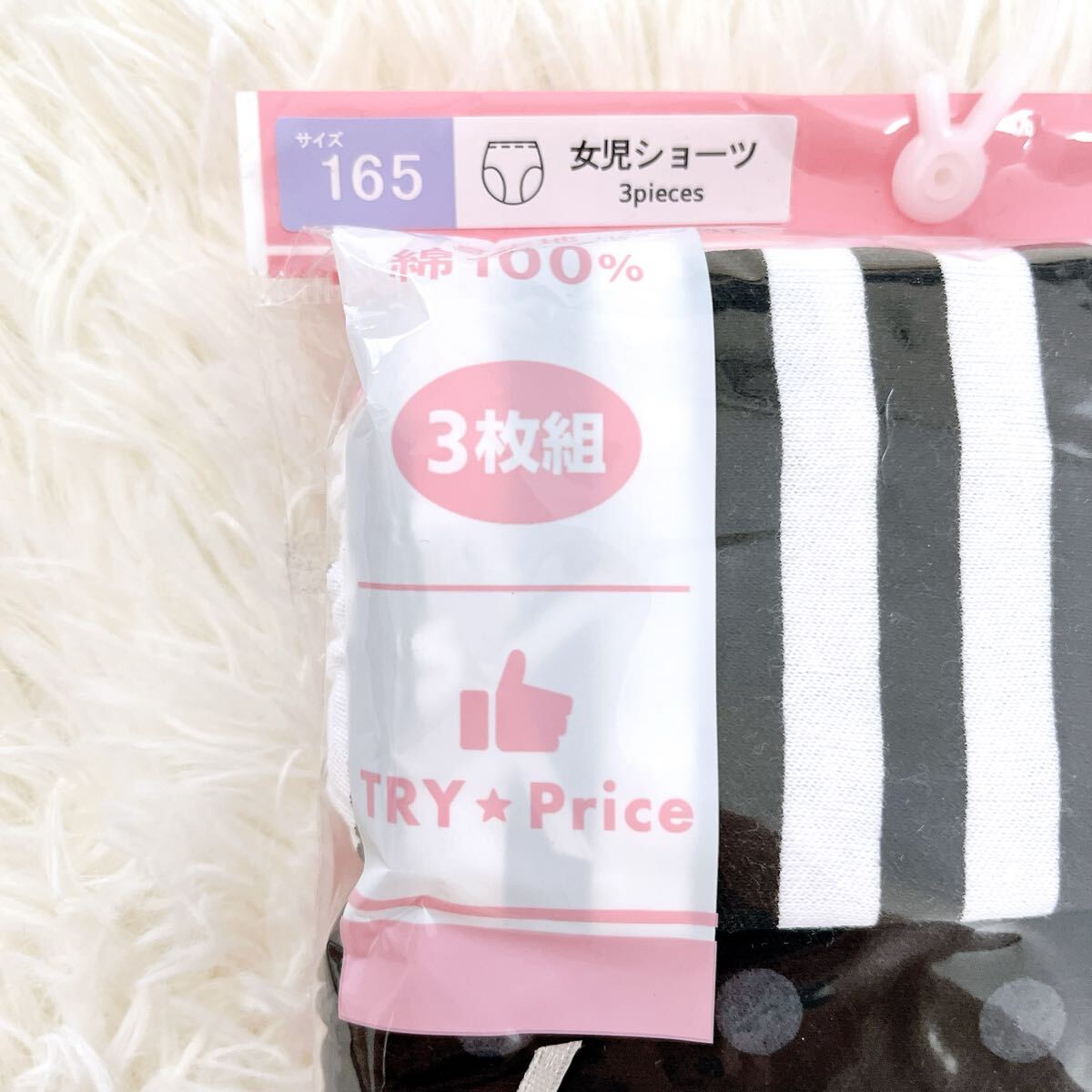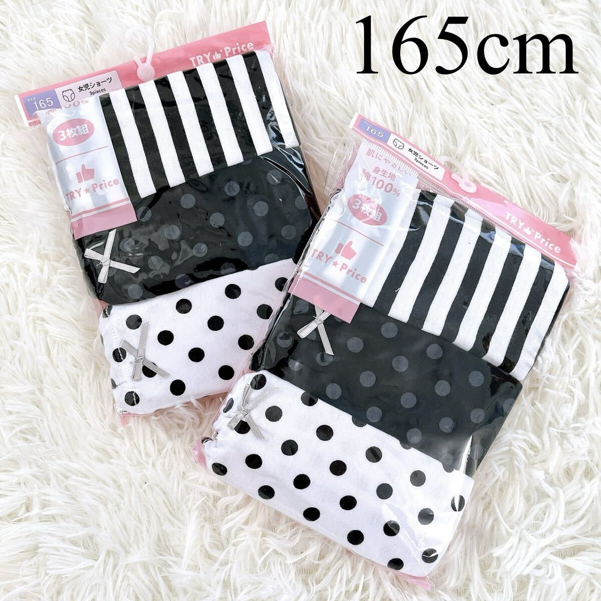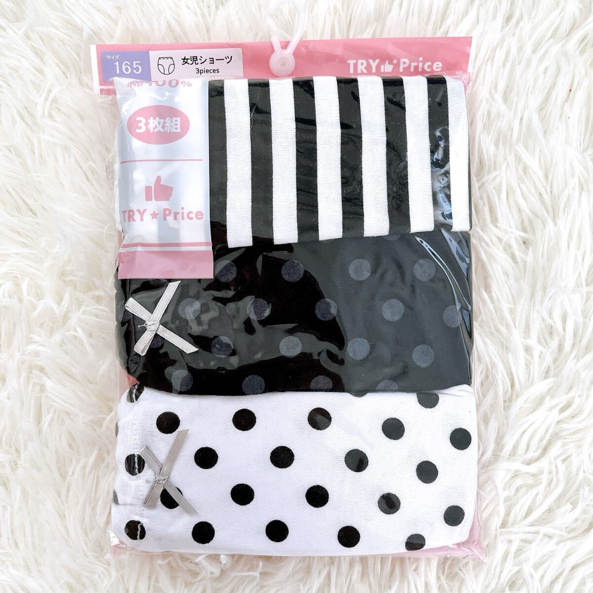 下着/パンツ/ショーツ/女の子/3枚/セット/3枚組/ドット/水玉/ボーダー/シンプル/TRY Price/綿100%/コットン/女の子/女児/子供/子ども/こども/キッズ/新品/未使用/未開封/美品/白/白色/ホワイト/黒/黒色/ブラック/140/150/160/165/セット/2セット/2個セット/2点セット/6枚