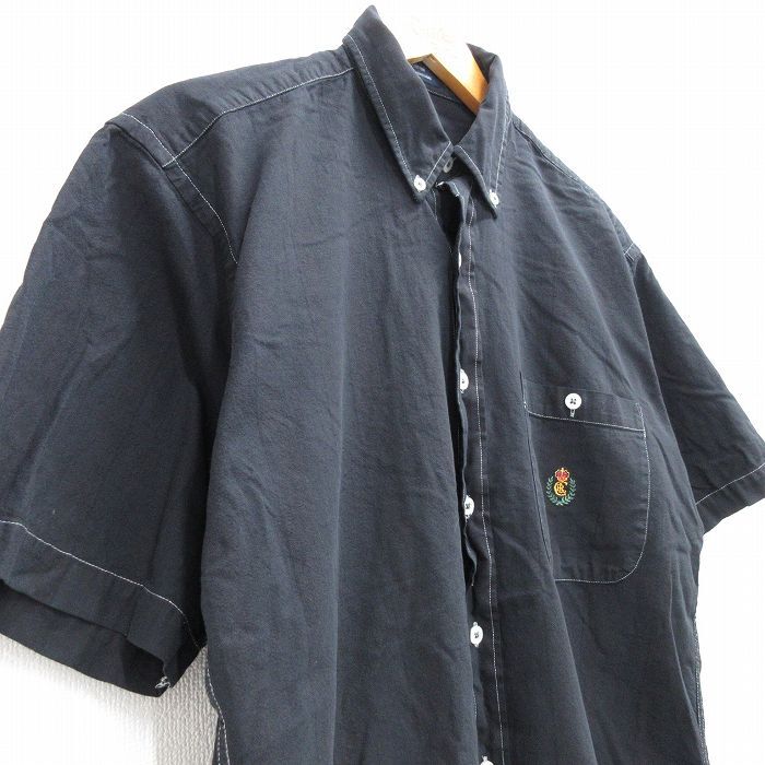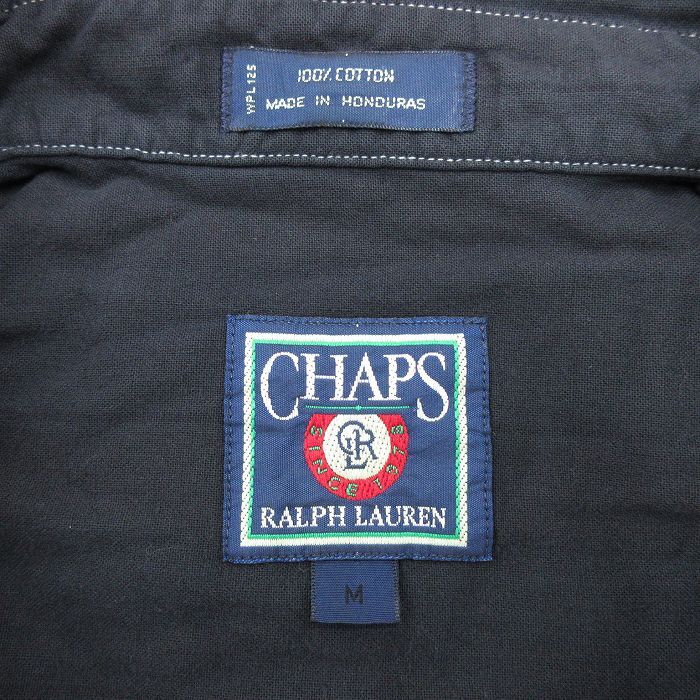 【商品名】 M★古着 ラルフローレン チャップス 半袖 ブランド シャツ メンズ 80年代 80s ワンポイントロゴ コットン ボタンダウン 黒 ストライプ