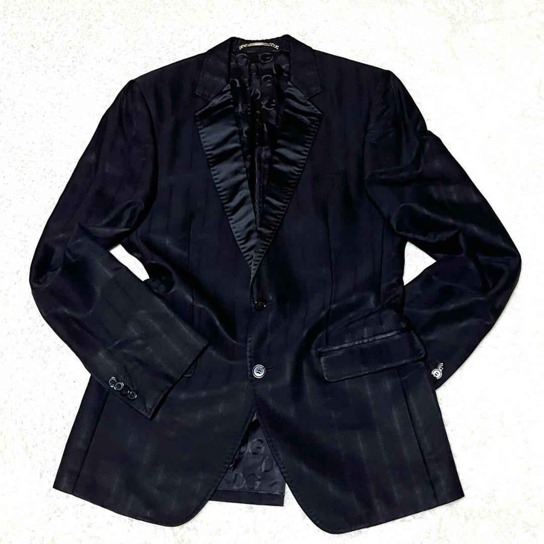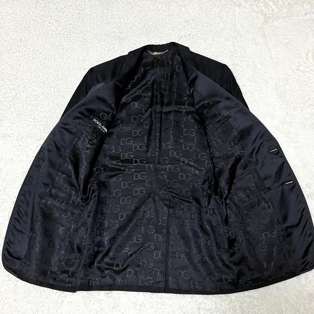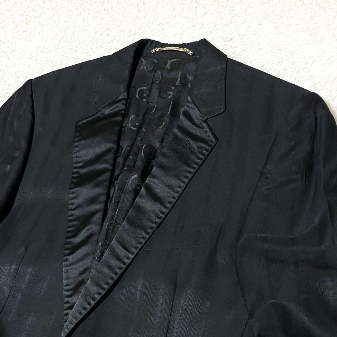 【希少・シルク混素材&シグネチャー裏地】 イタリア製 D&G ドルチェアンドガッバーナ テーラードジャケット ブラック 黒 M相当