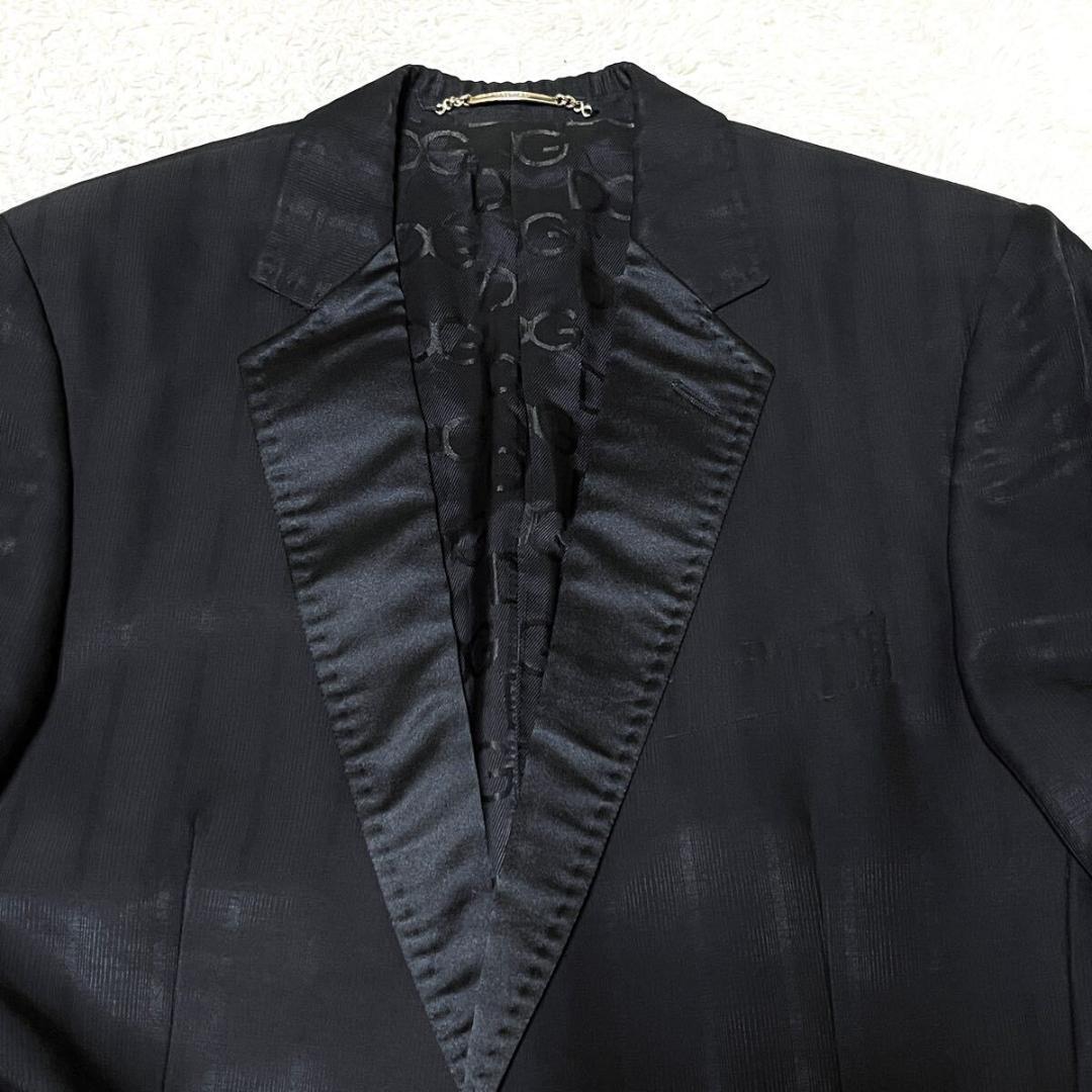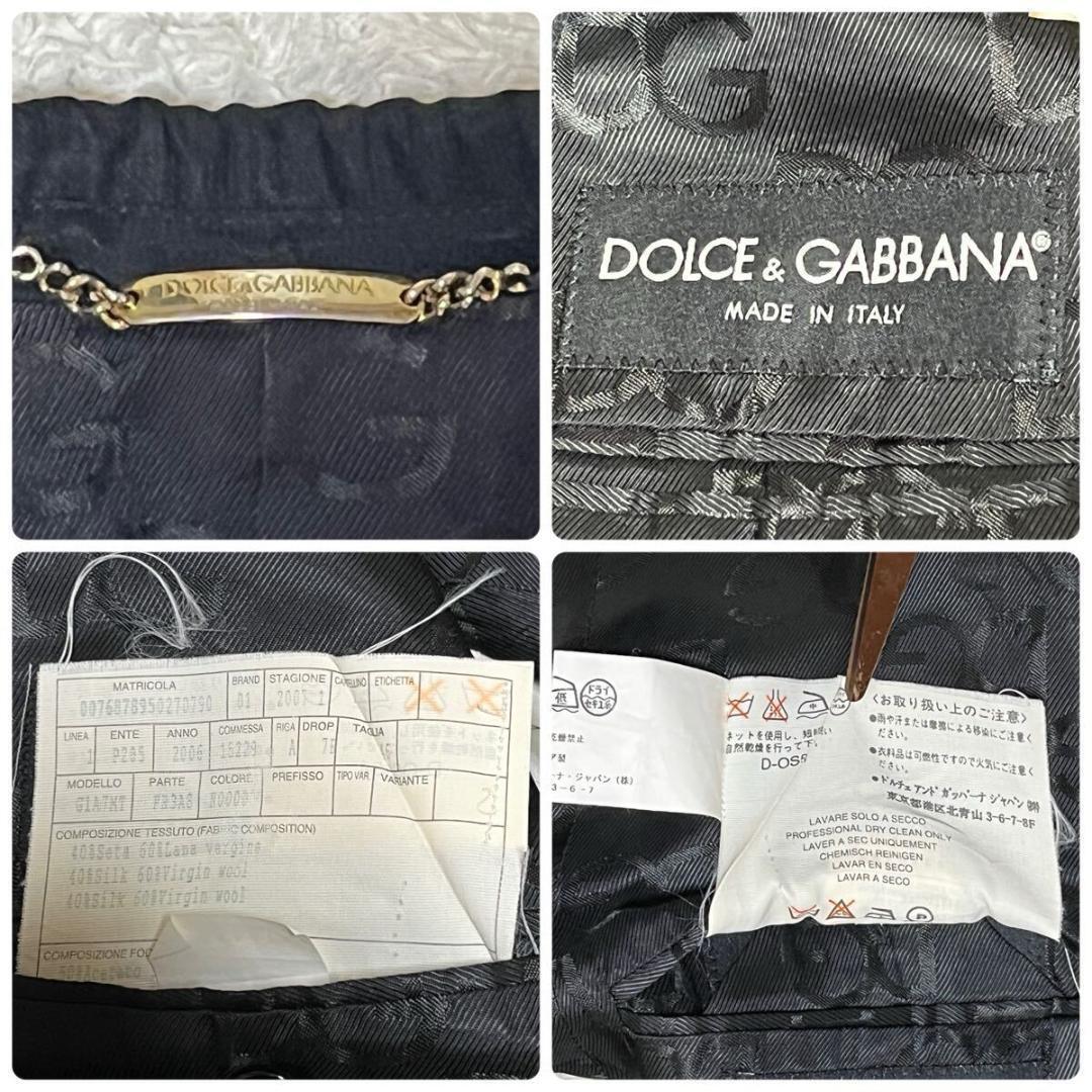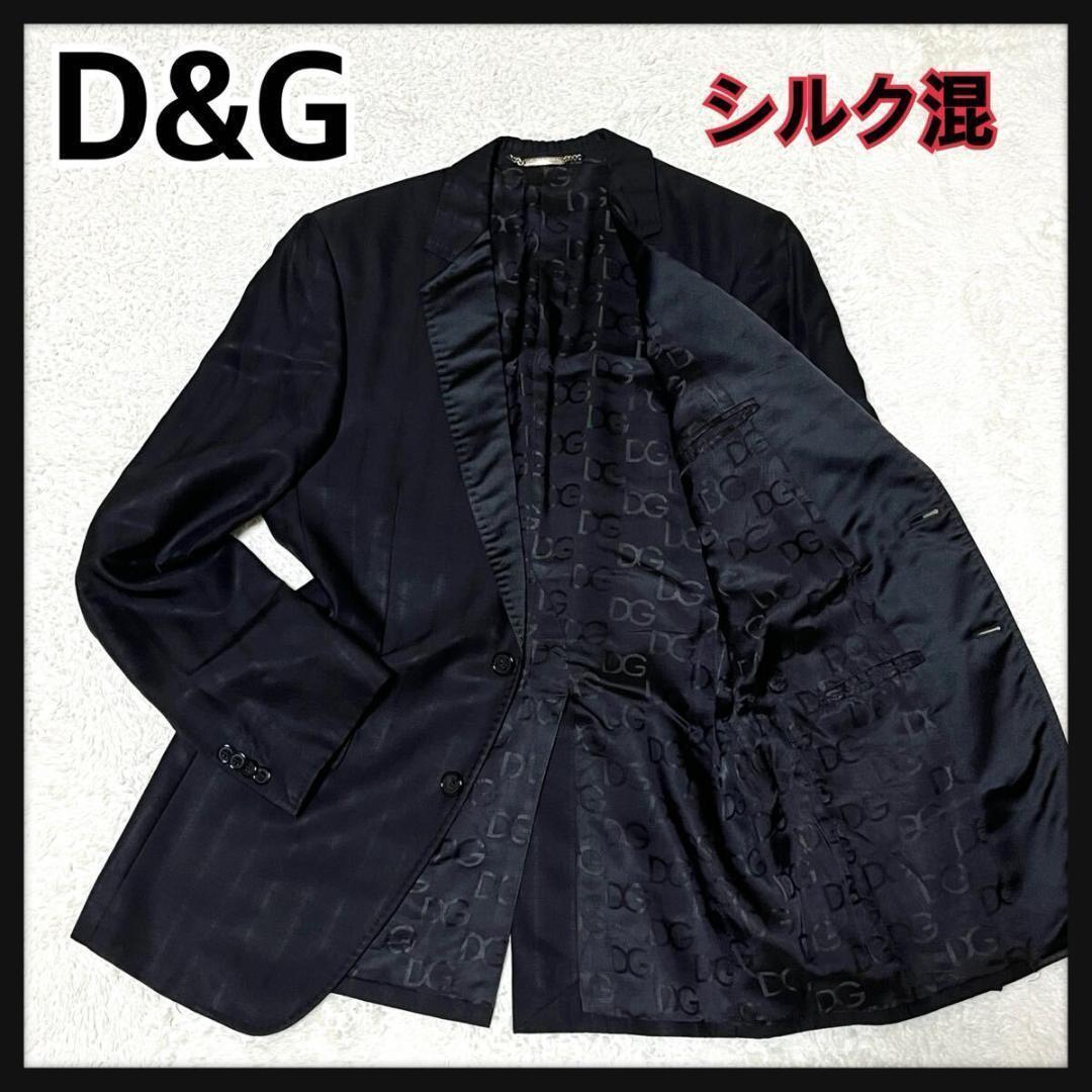 【希少・シルク混素材&シグネチャー裏地】 イタリア製 D&G ドルチェアンドガッバーナ テーラードジャケット ブラック 黒 M相当