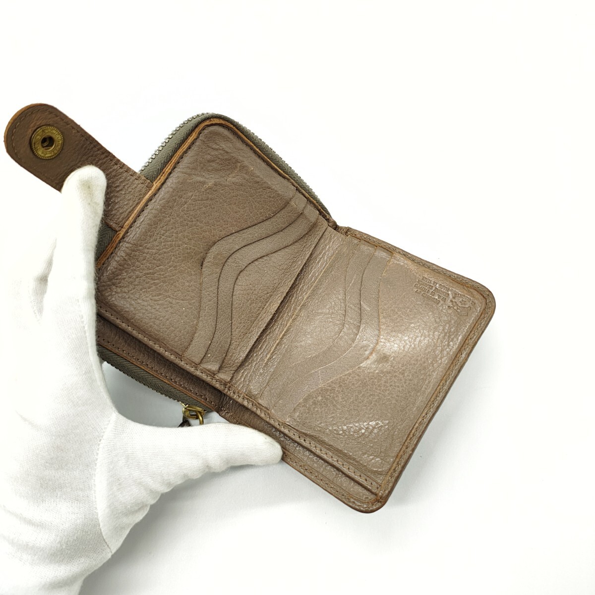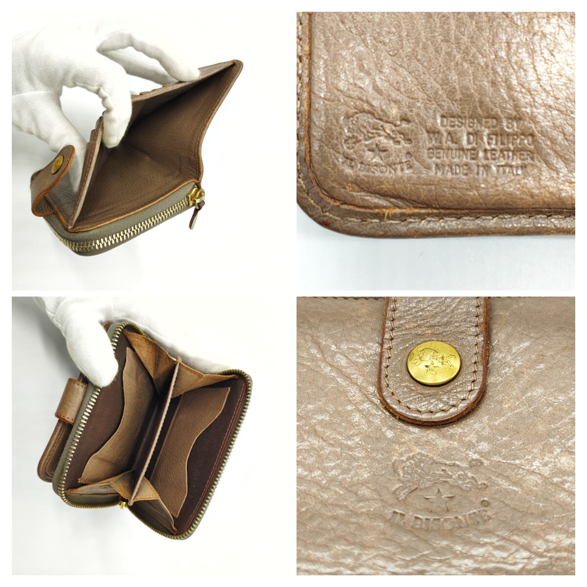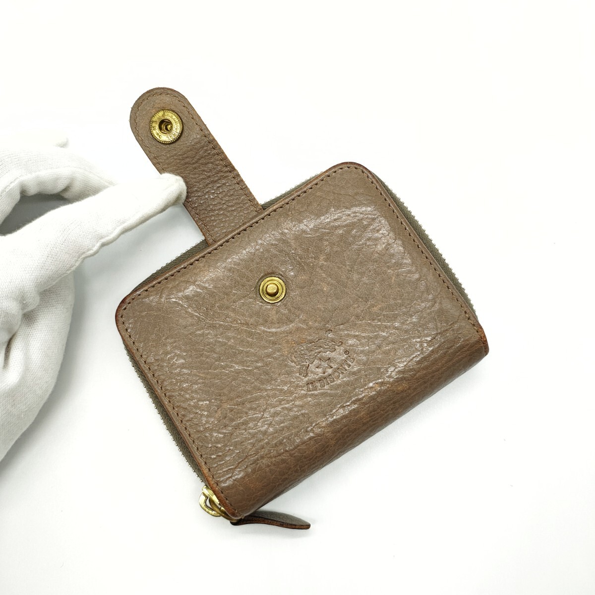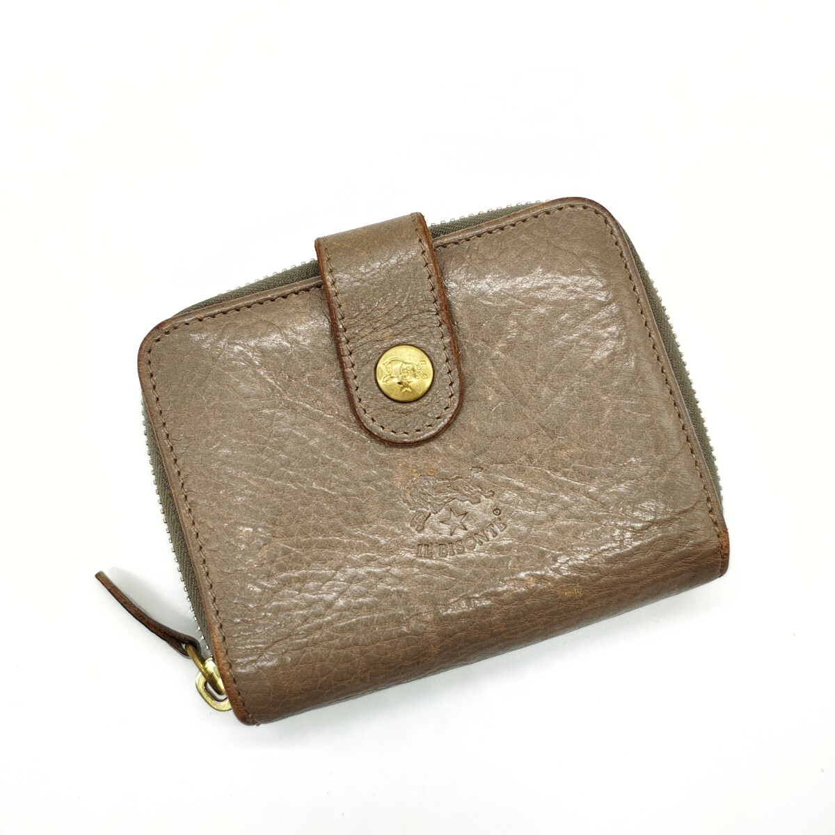 美品 IL BISONTE イルビゾンテ 二つ折り財布 ベージュ ラウンドジップ
