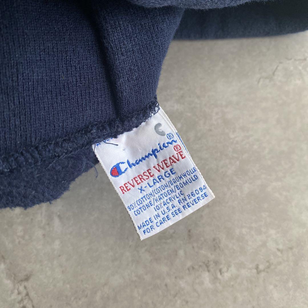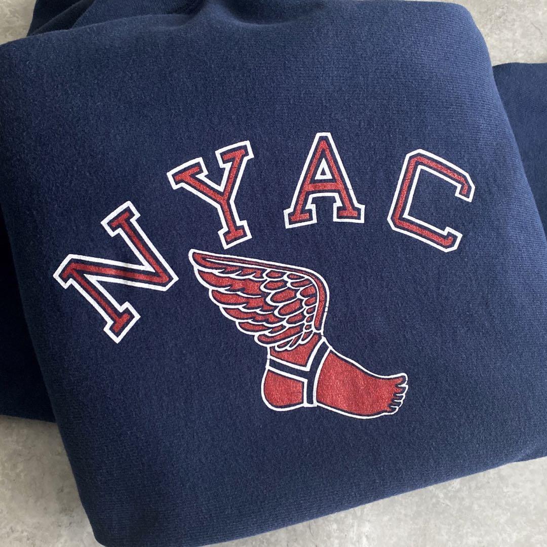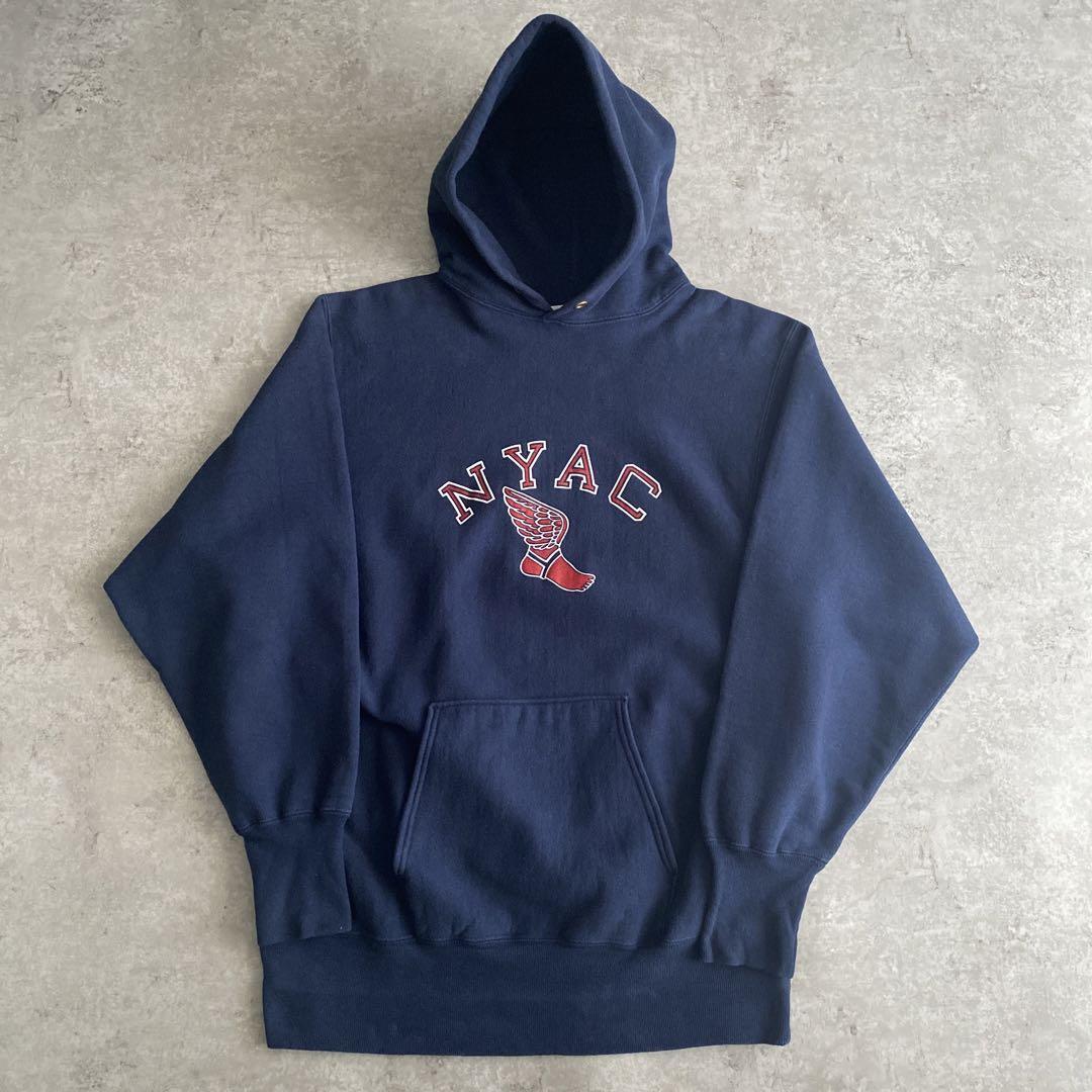 90s ビンテージ USA製 チャンピオン NYAC ウイングフット プリント REVERSE WEAVE リバースウィーブ スウェット パーカー 紺 ネイビー XL