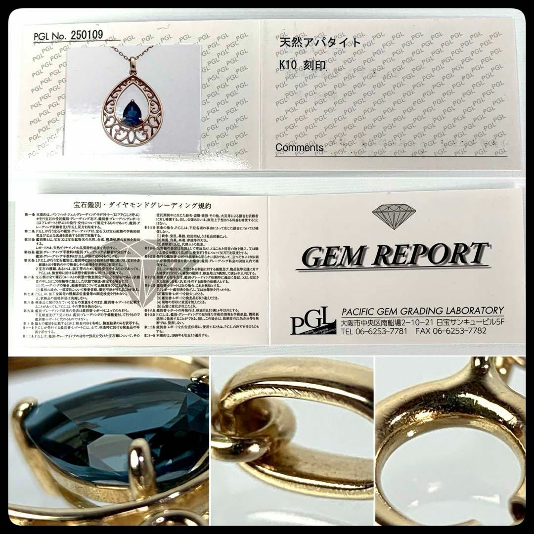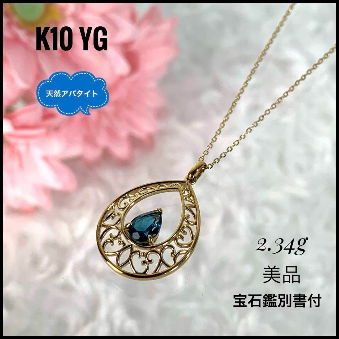 美品 K10 YG 天然アパタイト ネックレス スルーチェーン 2.34g 宝石鑑別書付き レディース