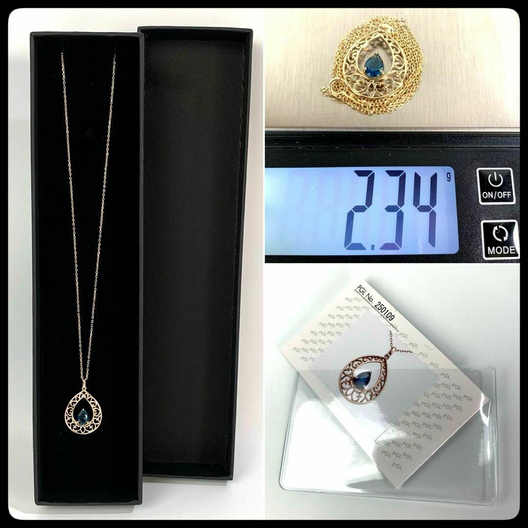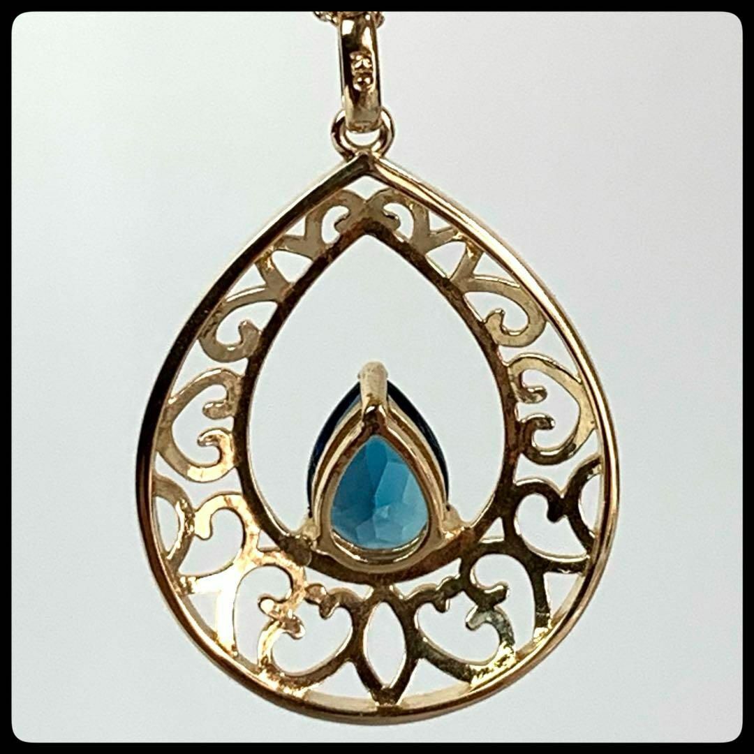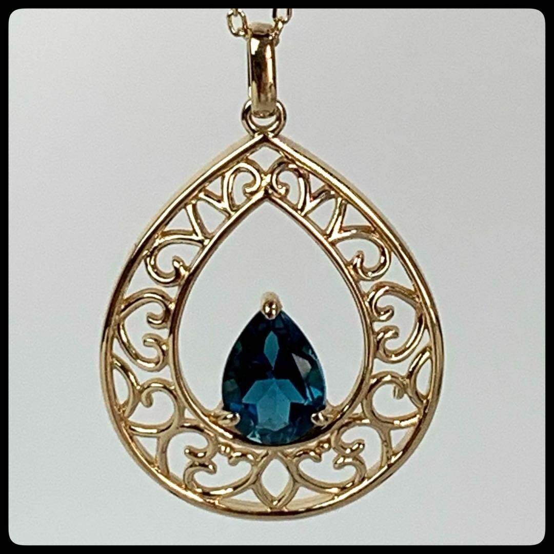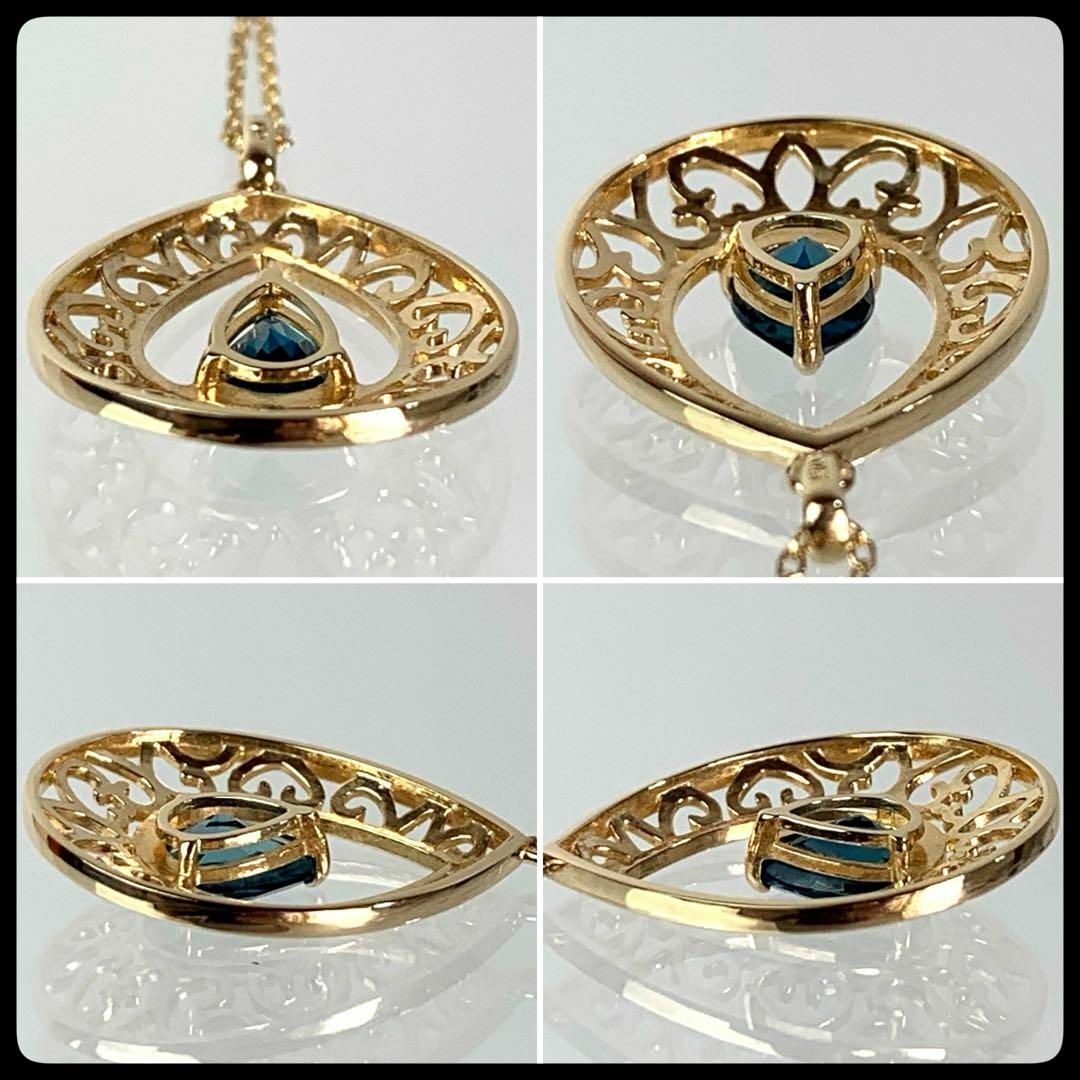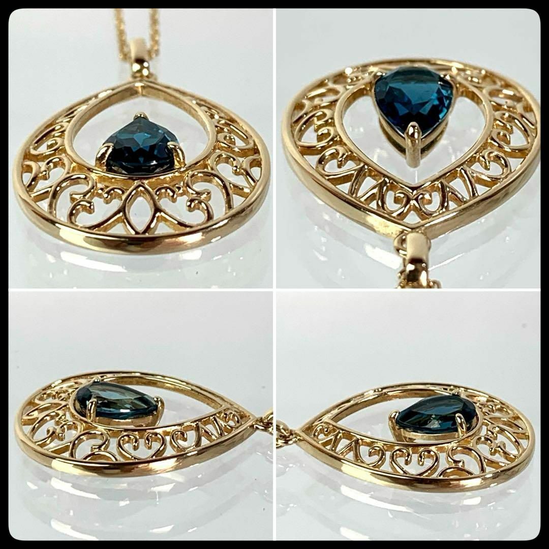 深みのあるブルーが美しい、天然アパタイトを使用した10金イエローゴールドのペンダントネックレスです♪