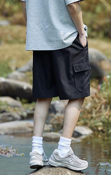 メンズ ハーフカーゴパンツ 無地 シンプル フェス キャンプ ブラック サイズL