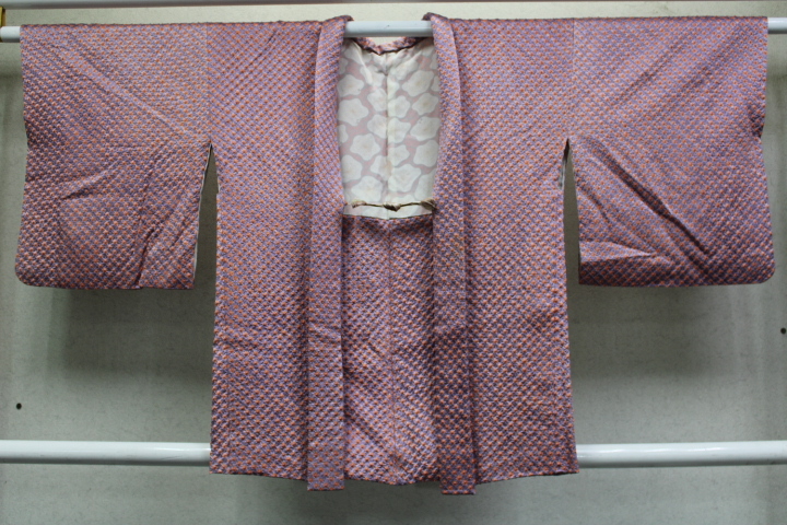 お羽織と作り帯セットアップ 正絹総絞り 太目しぼり 藤色地ローズ色目返し