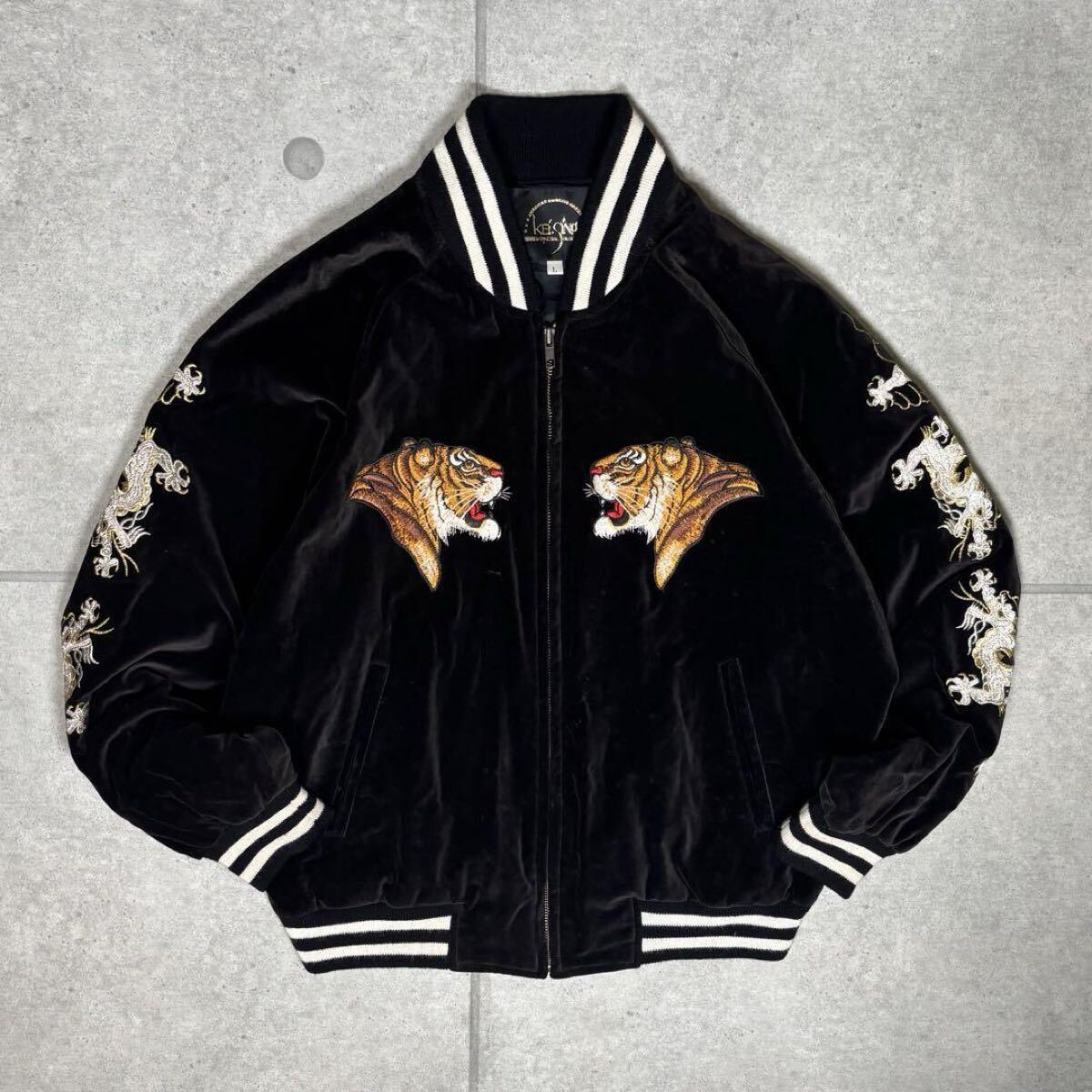 全面にトラ、ドラゴン、竹藪などが贅沢に刺繍が施されております。