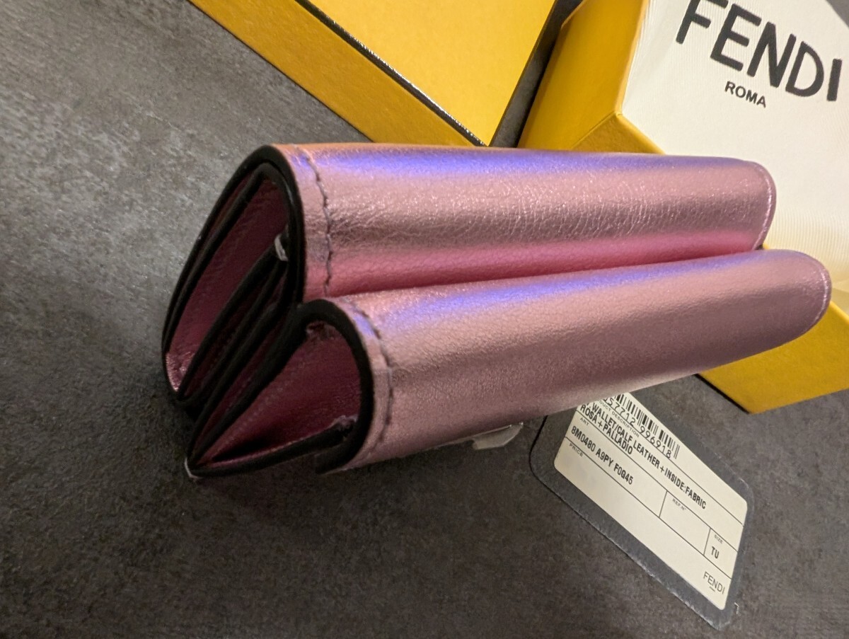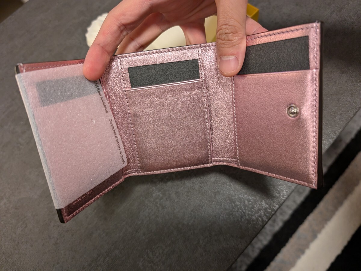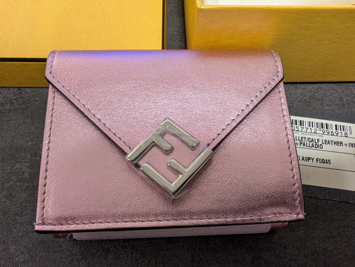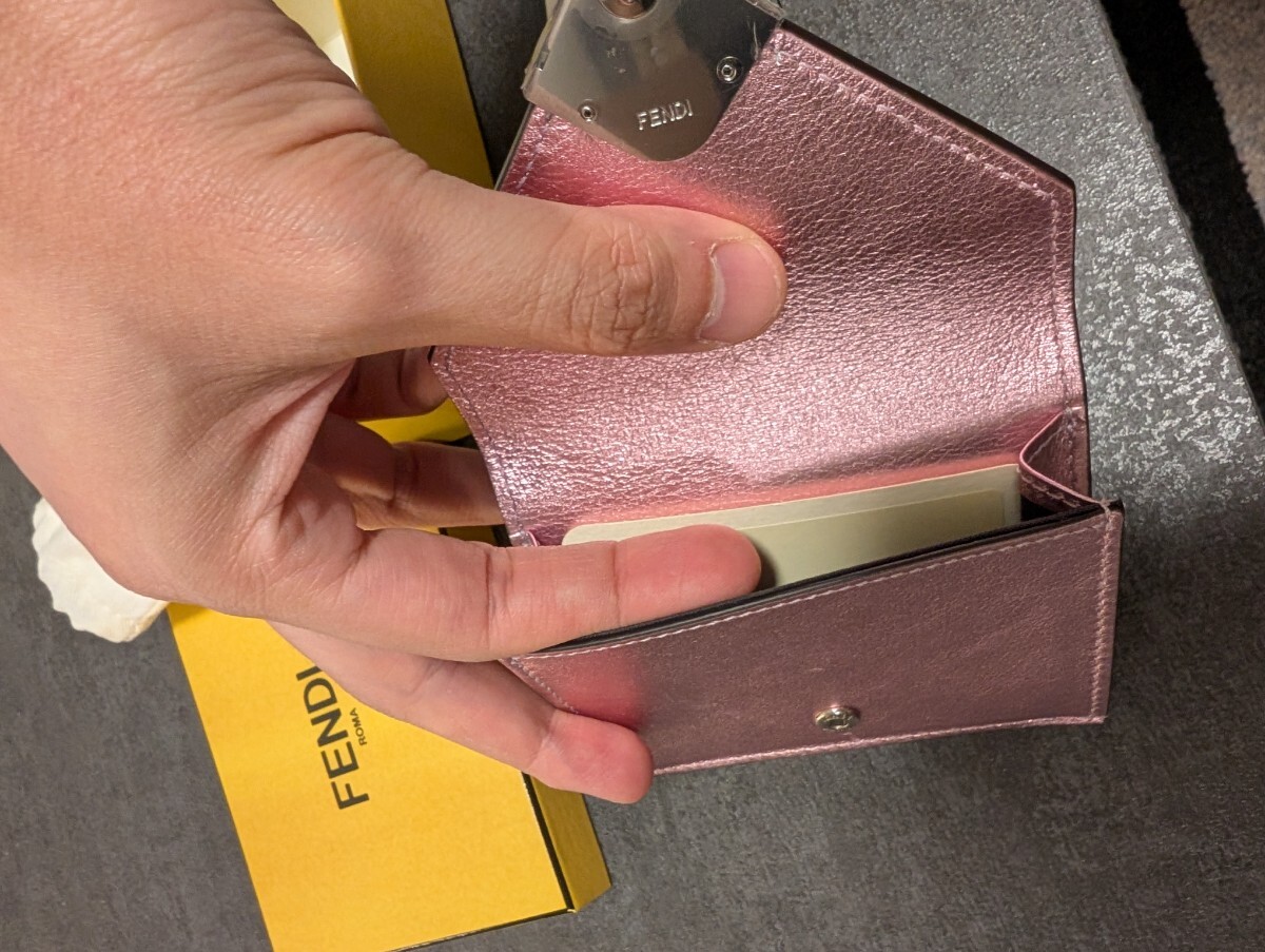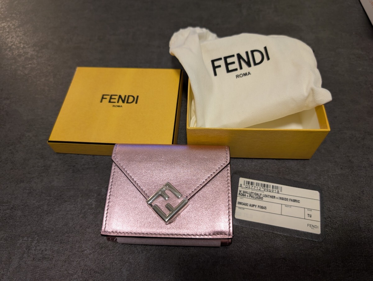 少し前に買ったのですが一度も使ったことのない新品同様のFendiのお財布です。もともと付いていた保護シールや中身のペーパーなどもそのままの状態です。付属品としては写真の通り、ダストバッグや箱、商品タグとなります。